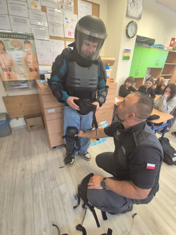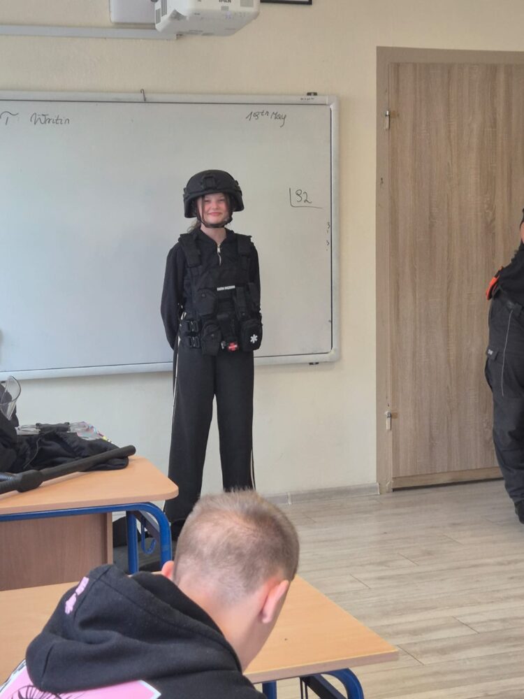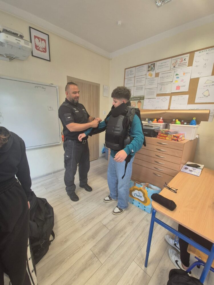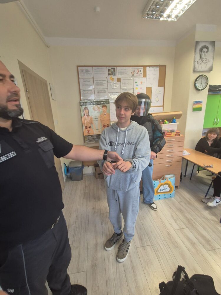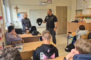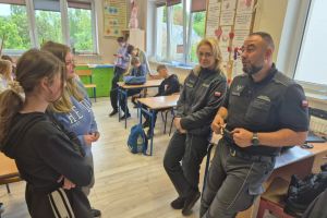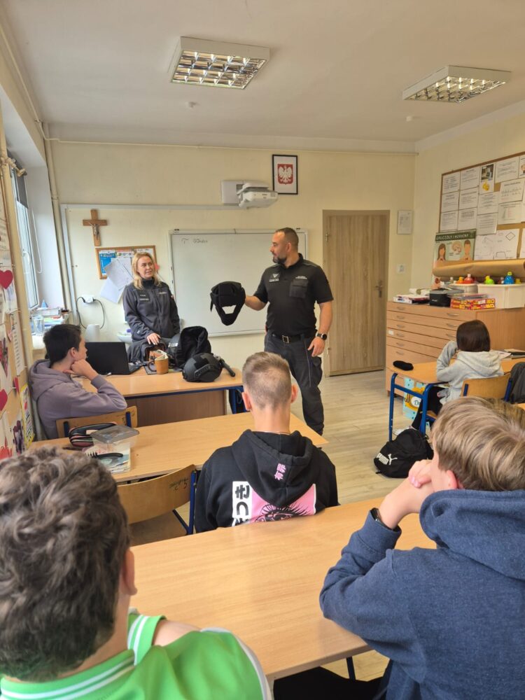 W dniu 19 maja na lekcji z doradztwa zawodowego w klasie VII i VIII, zorganizowanej przez pedagoga specjalnego A.Semeńczuk gościliśmy przedstawicieli Zakładu Karnego-Służby więziennej w Zarębie. Młodzież dowiedziała się jak funkcjonuje zakład karny. Zakład karny to nie tylko miejsce odbywania kary, której podstawową funkcją jest izolacja. To przede wszystkim resocjalizacja skazanych mająca na celu podjęcie zmian w obszarze funkcjonowania każdego osadzonego, który popełnia czyny karalne. Uczniowie uzyskali informacje o pracy w służbie więziennej. Dziękujemy naszym gościom za ciekawą lekcję.