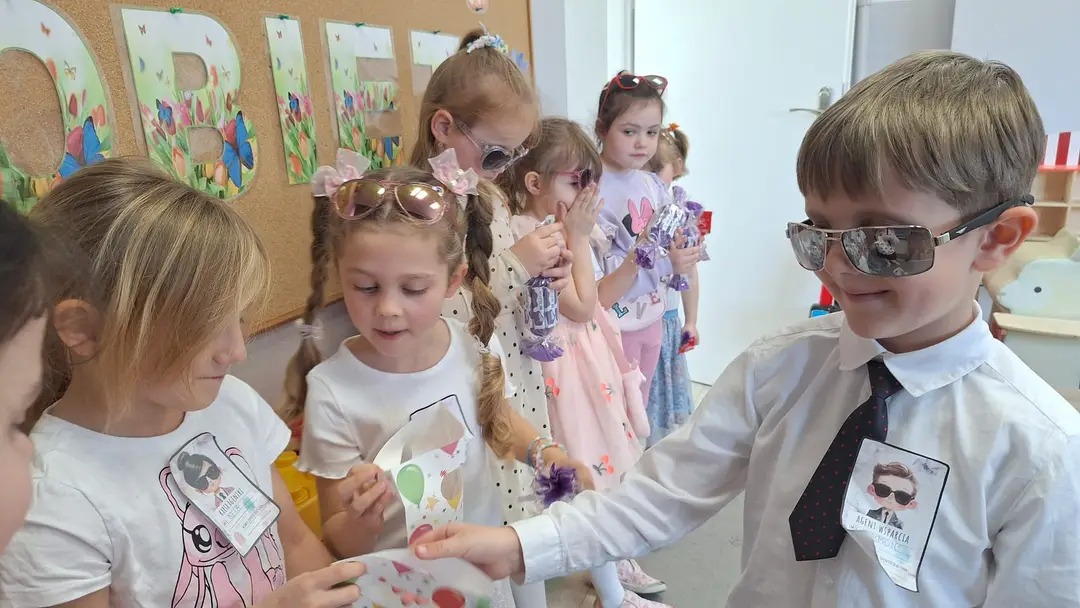 Podczas akcji wszyscy: tajne agentki i tajni agenci przeprowadzili zaszyfrowaną akcję pt. ”Gdzie zniknęło światło latarki”. Dzielnym agentkom udało się odtajnić tę więdzę, odnaleźć i ukarać ”ostrego” szpiega, którym okazała się zagraniczna agentka ukryta pod pseudonimem ”Żółta Kurkuma”. Szpiega znaleziono i wsadzono do ”puszki”, a dokładniej do słoika. Podczas naszych tajnych zabaw, każdy przedszkolak poczuł dreszczyk emocji, jak prawdziwy tajny agent. Na koniec męscy agenci złożyli życzenia, wręczyli tajne prezenty, źeńskim agentkom i znów stali się niezwykłymi przedszkolakami. Było tajemniczo, bezpiecznie i bardzo wesoło.