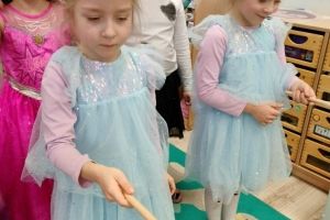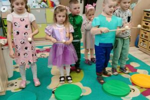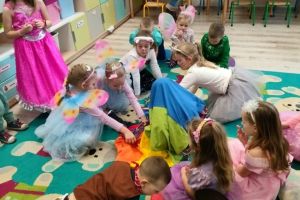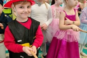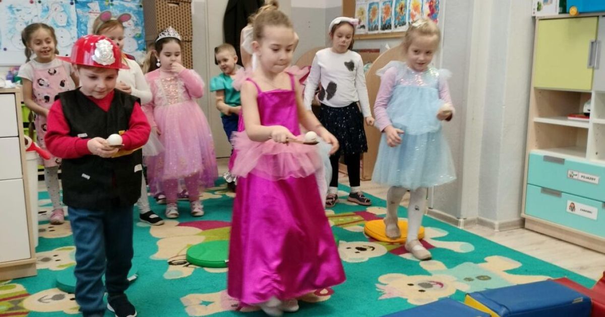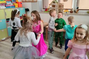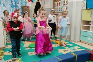 Wyścigi z łyżkami, „Kto ukrył się pod chustą?”, przechodzenie pod liną, wybór króla i królowej balu to tylko niektóre z atrakcji, które czekały na dzieci tego dnia. Rodzice zadbali o piękne przebrania oraz poczęstunek. Serdeczne podziękowania składamy mamie Michała oraz Jasia za pomoc przy poczęstunku.