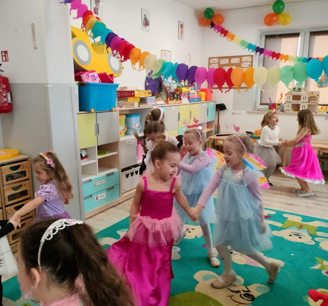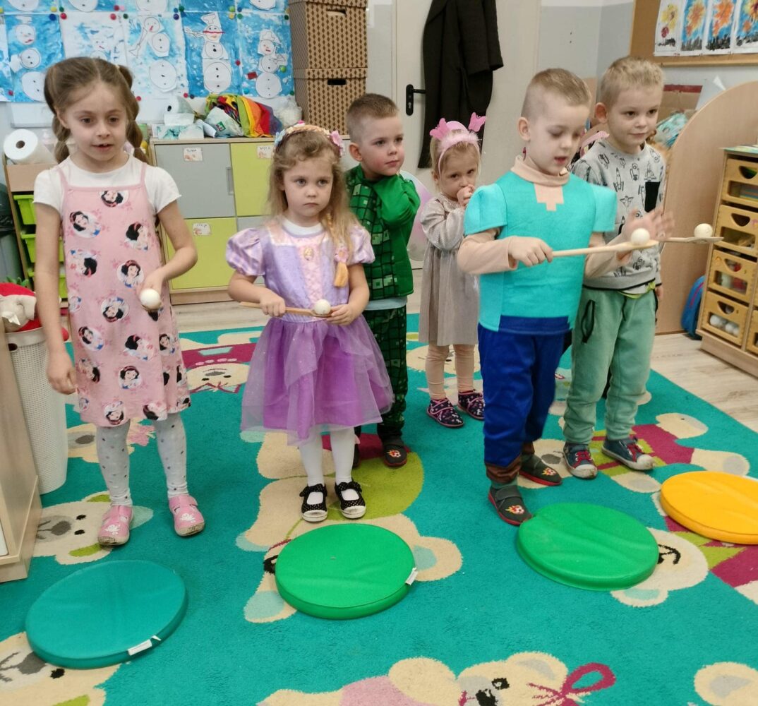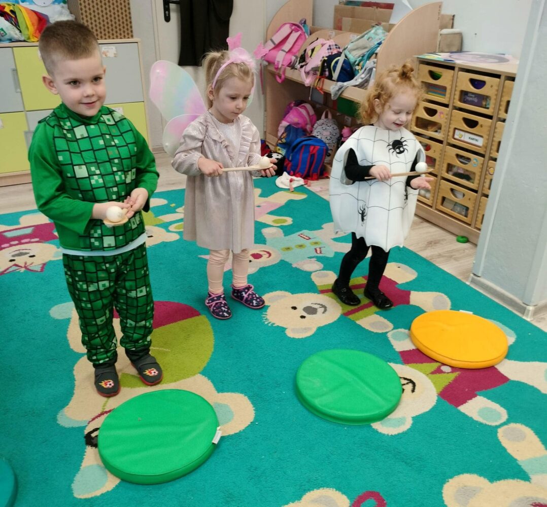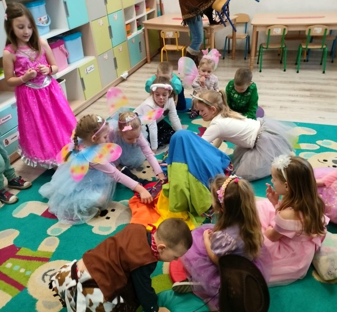 Wyścigi z łyżkami, „Kto ukrył się pod chustą?”, przechodzenie pod liną, wybór króla i królowej balu to tylko niektóre z atrakcji, które czekały na dzieci tego dnia. Rodzice zadbali o piękne przebrania oraz poczęstunek. Serdeczne podziękowania składamy mamie Michała oraz Jasia za pomoc przy poczęstunku.
