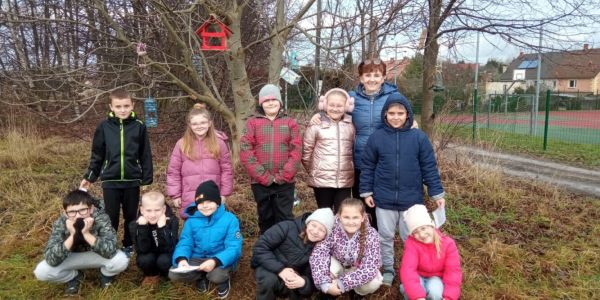 Ekspozycja karmników ekologicznych przez klasę 3 w otoczeniu naszej szkoły, pod hasłem: ” Karmni…