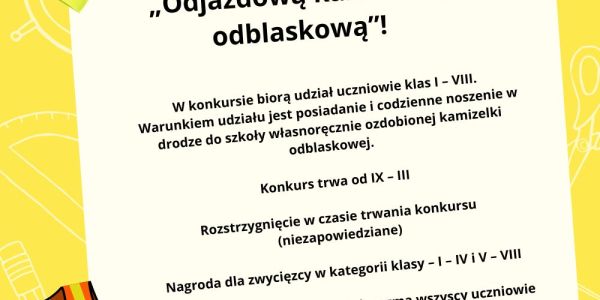 Ogłaszamy konkurs na „odjazdową kamizelkę odblaskową”! W konkursie biorą udział uczniowie klas I -…