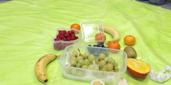 Wiewióreczki OP w zeszłym tygodniu poznawały multisensorycznie warzywa i owoce, bawiąc się w „Smacz…