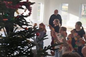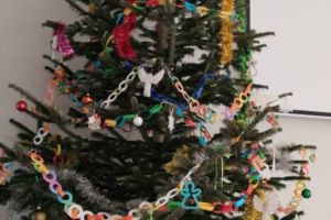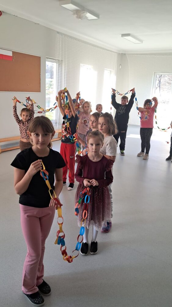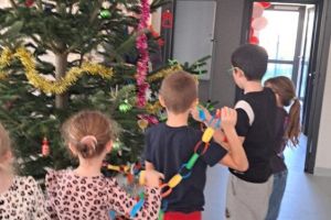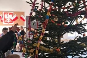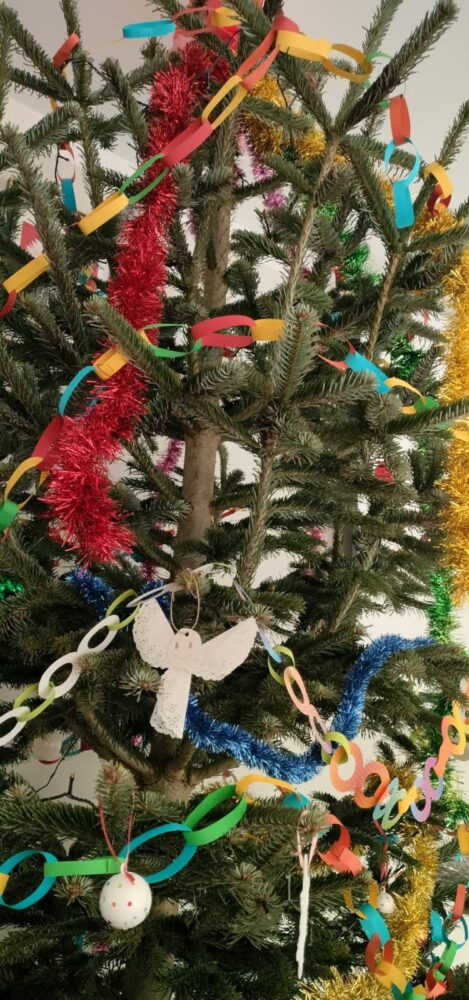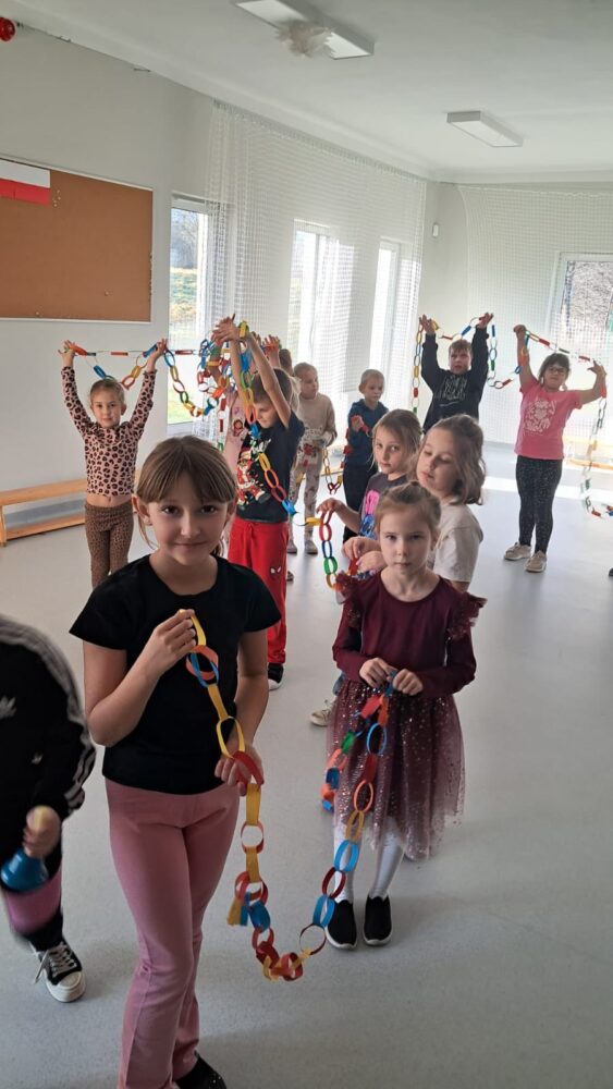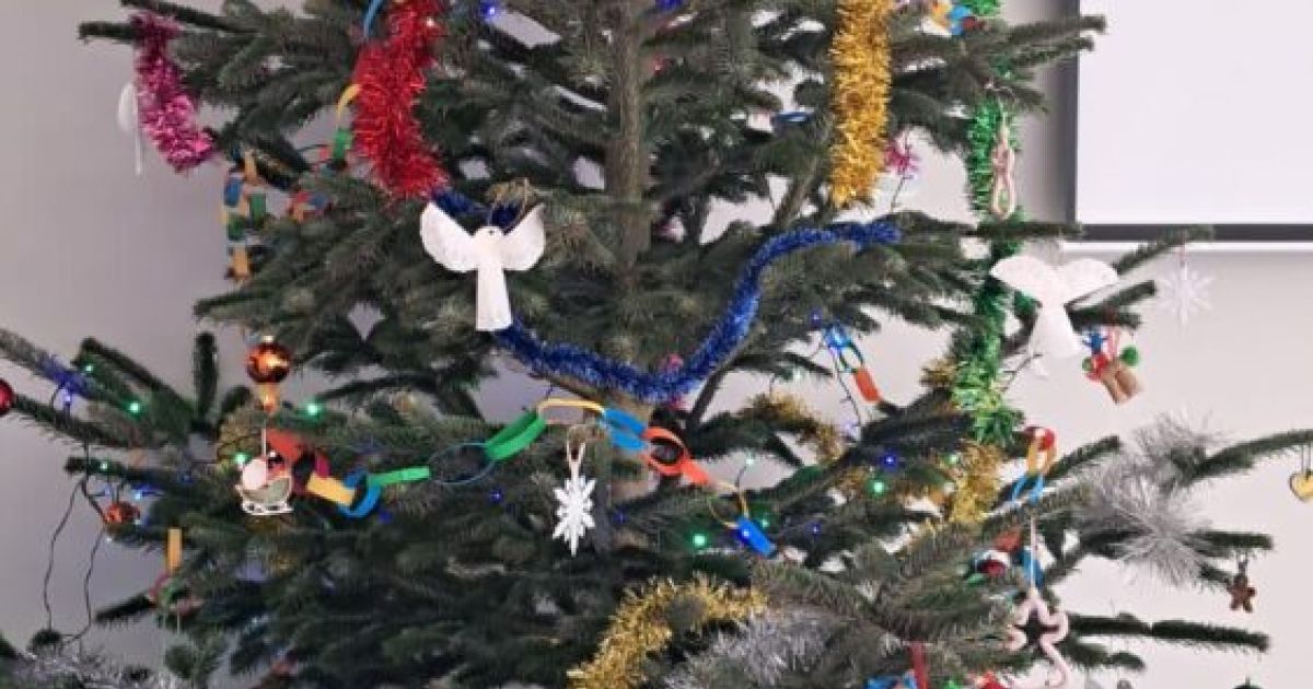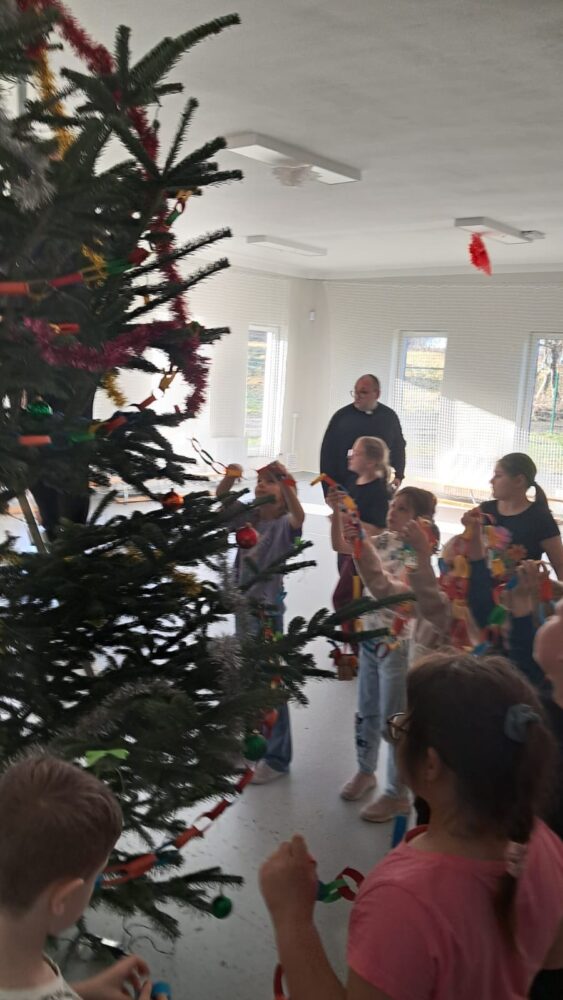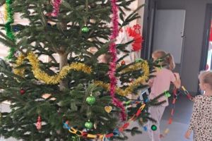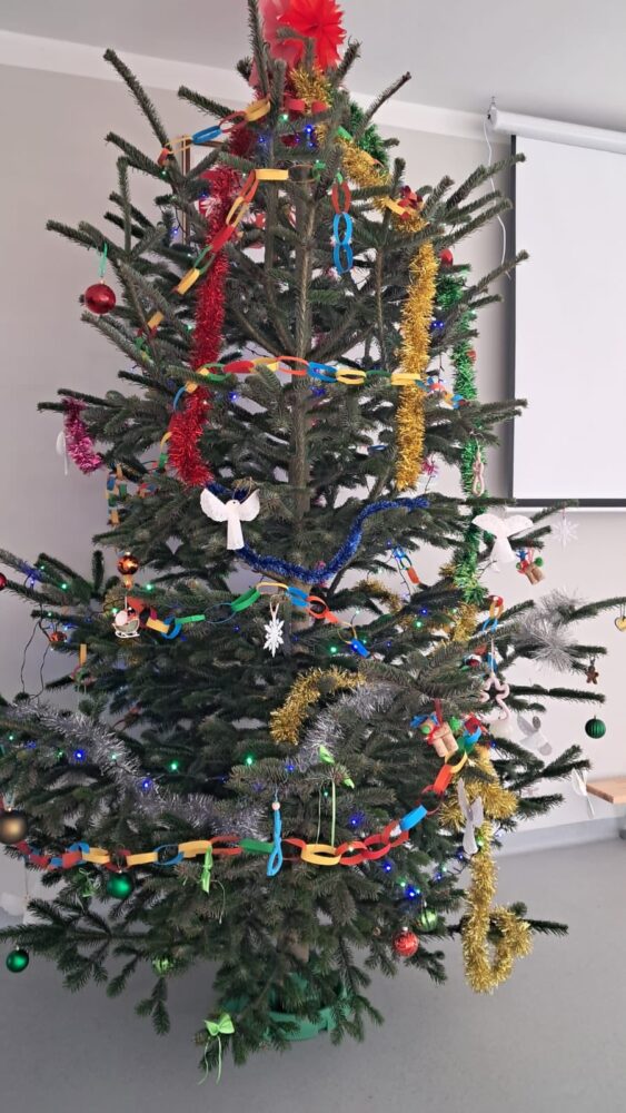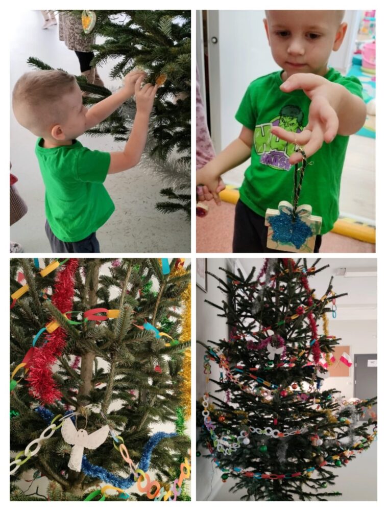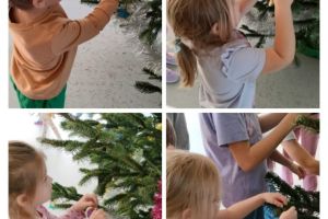 Klasy 1 – 3 oraz dzieci z oddziałów przedszkolnych z wychowawcami w dniu 12.12.2025r. udekorowali choinkę w naszym nowym holu. Dziękujemy dla rodziny Tosi i Klary za przywiezienie pięknego drzewka do naszej szkoły.