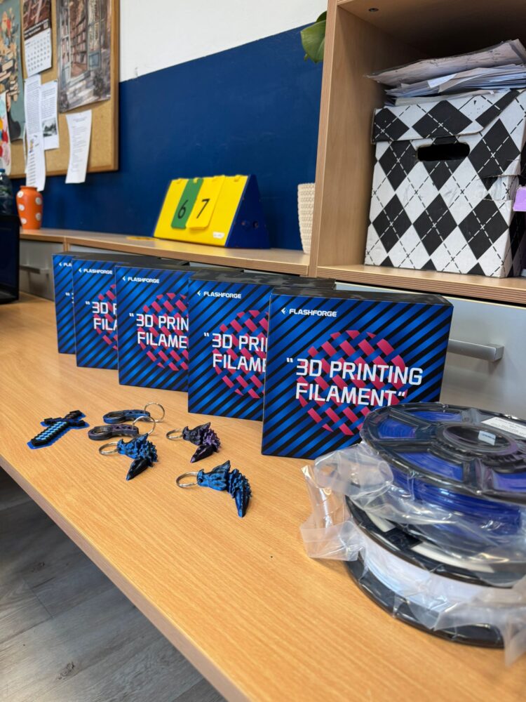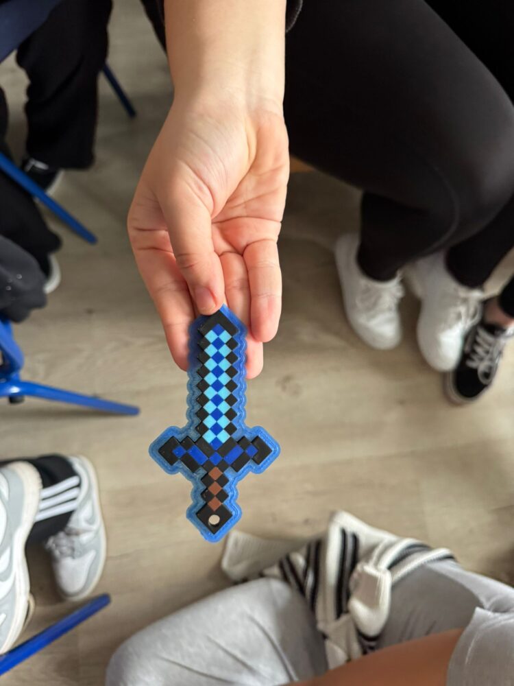 Podczas zajęć wykorzystano drukarkę 3D oraz filamenty zakupione w ramach programu Laboratoria Przyszłości #OTK2025