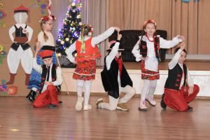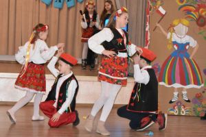 Przedszkolaki rozpoczęły uroczystość dostojnym polonezem, a klasy 1-3 wirowały w rytm poleczki i kujawiaka.