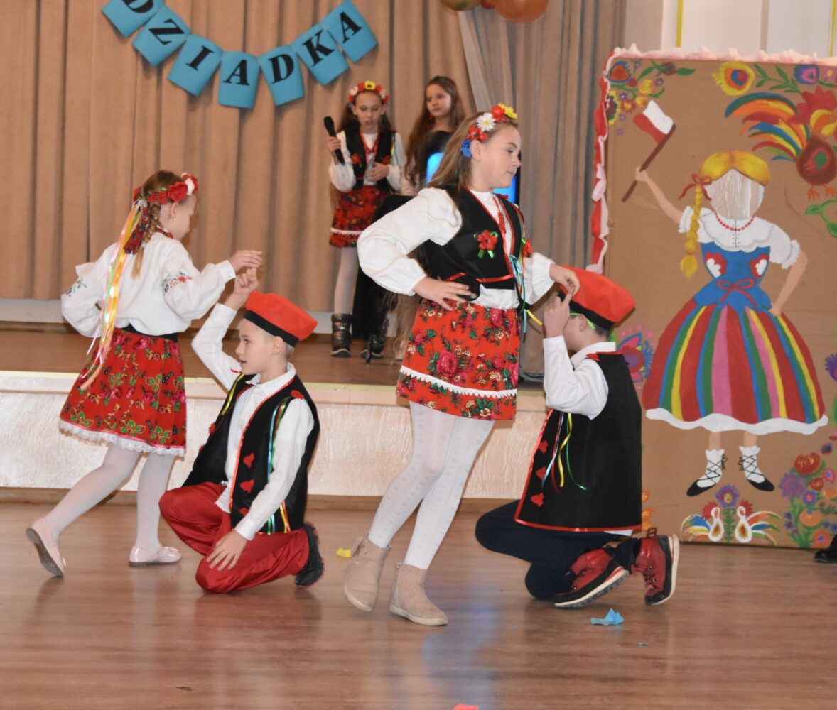 Przedszkolaki rozpoczęły uroczystość dostojnym polonezem, a klasy 1-3 wirowały w rytm poleczki i kujawiaka.