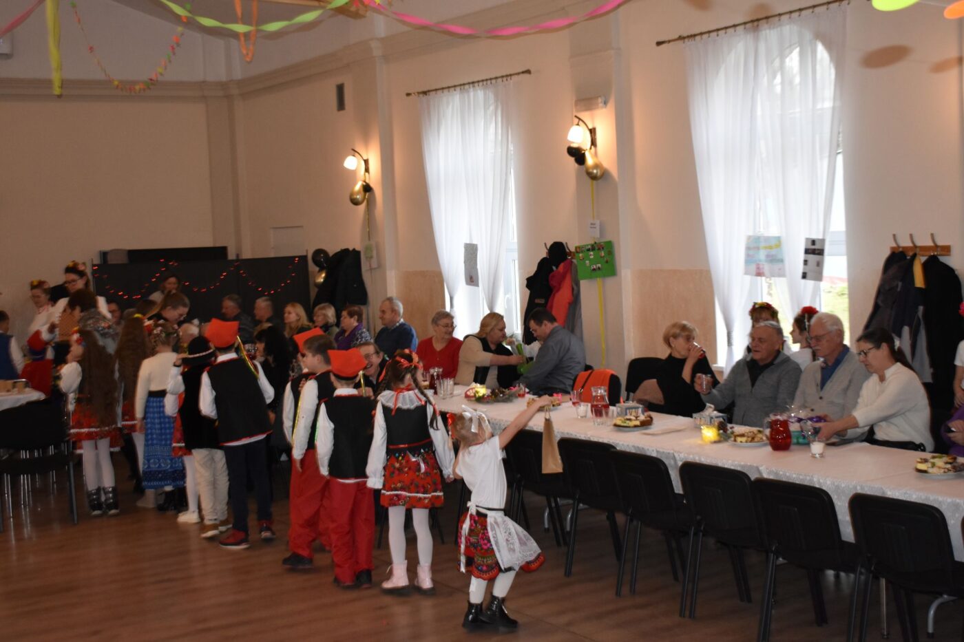 Po części oficjalnej dzieci wraz z dziadkami uczestniczyli w zabawach i tańcach integracyjnych. Nie zabrakło też czasu na wspominki przy kawie i cieście, podczas gdy dzieci brały udział w zabawie karnawałowej.