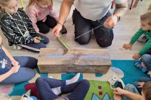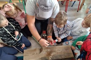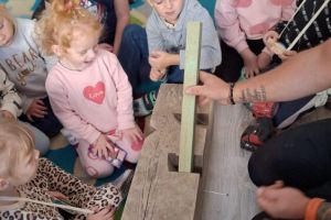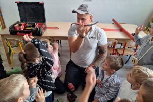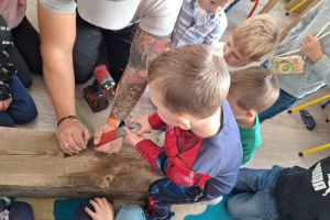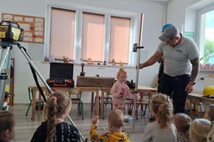 Dzięki uprzejmości Pana Andrzeja Bartosiewicza, przedszkolaki z Oddziałów Przedszkolnych z okazji Dnia Budowlańca miały możliwość zaznajomienia się z tym zawodem. Poznały urządzenia i narzędzia wykorzystywane na budowie, miedzy innymi: poziomice, projekty budowy, wkrętarki, miarki i wiele innych. Bardzo podobało się dzieciom wkręcanie i wykręcanie oraz wyznaczanie linii prostej za pomocą sznura traserskiego …
