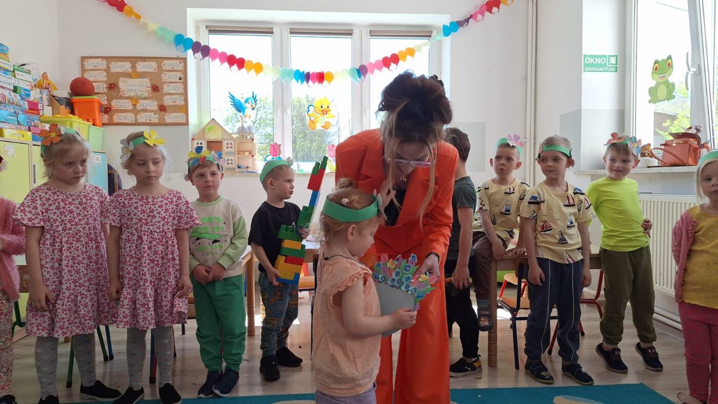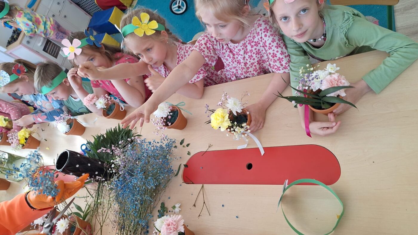 Z okazji Dnia Florysty dzieci z oddziałów przedszkolnych odwiedziła Pani florystka. Przedszkolaki poznały nazwy wybranych kwiatów oraz sposoby ich pielęgnacji.