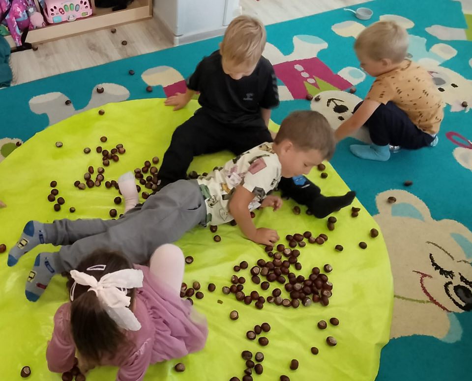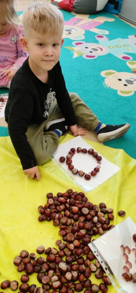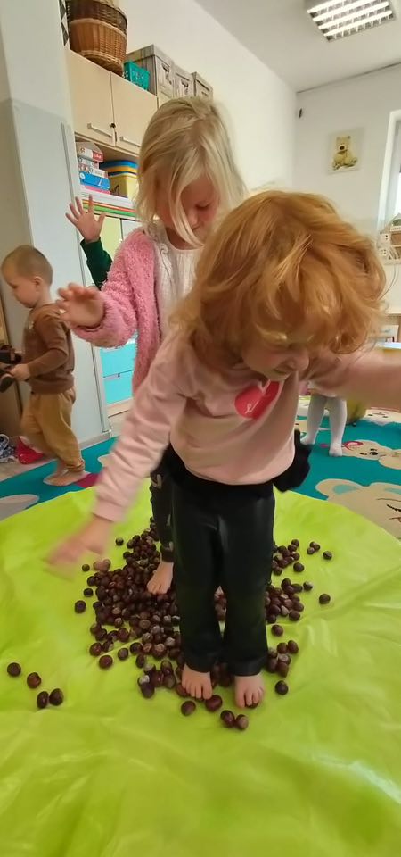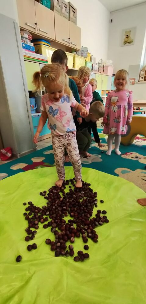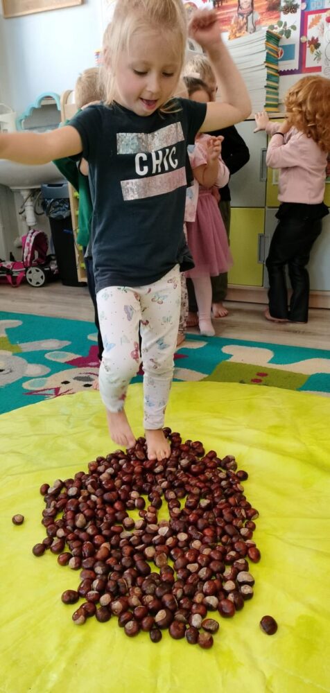 DZIEŃ KASZTANA W GRUPIE „MISIÓW” – zabawy sensoryczne sprawiły wiele radości.