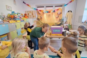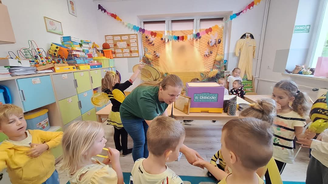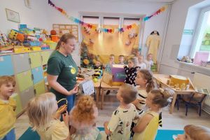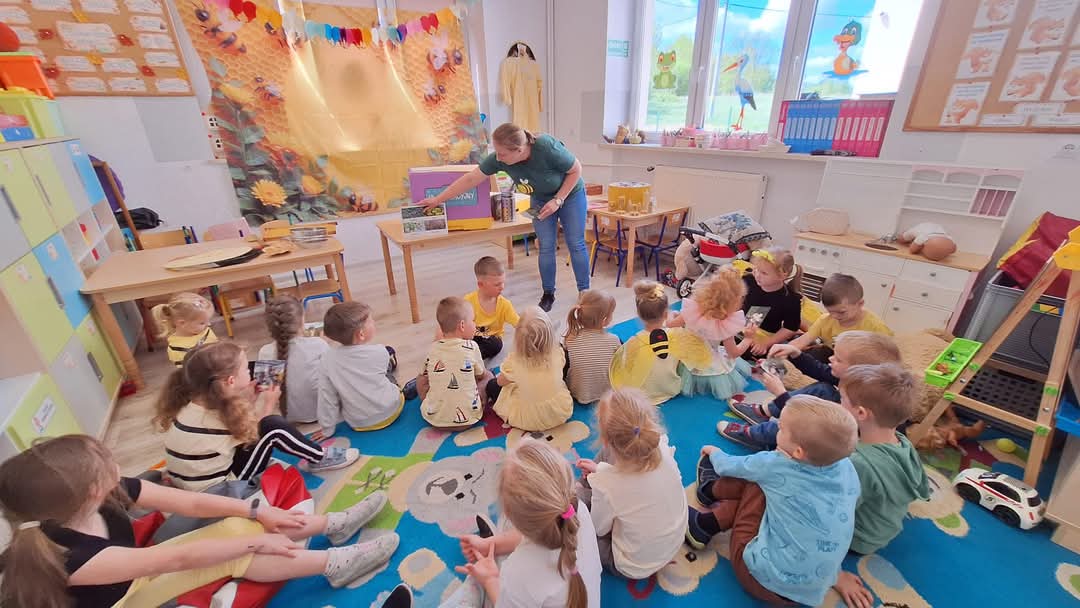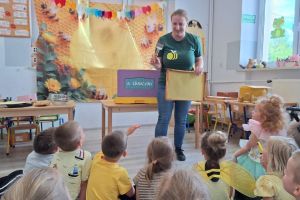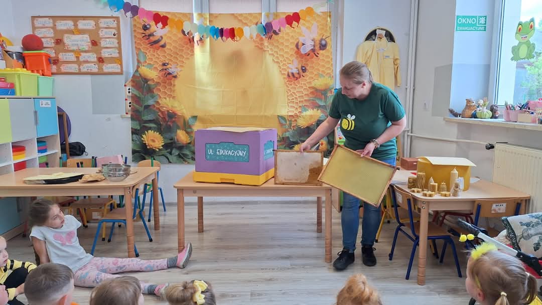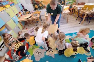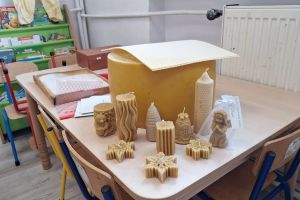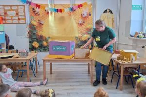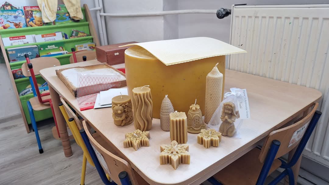 Po spotkaniu z mamą Oliwii pozostało nam w pamięci wiele ciekawych informacji z życia pszczół i piękny zapach wosku unoszący się w sali…