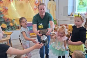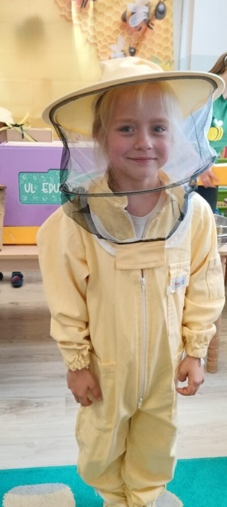 Z okazji Dnia Pszczoły odwiedziła nas Pani pszczelarka – mama Oliwii. Przedszkolaki miały okazję zobaczyć ul od ,,kuchni” oraz poznać organizację i zwyczaje jego mieszkańców. Dzieci zobaczyły jak wyglądają rośliny miododajne oraz zapoznały się z etapami produkcji miodu. Maluszki dowiedziały się co to jest wosk pszczeli i jak można go wykorzystać. Na koniec, już każde dziecko chciało zostać pszczelarzem i tradycyjnie przymierzyć strój pszczelarza.
