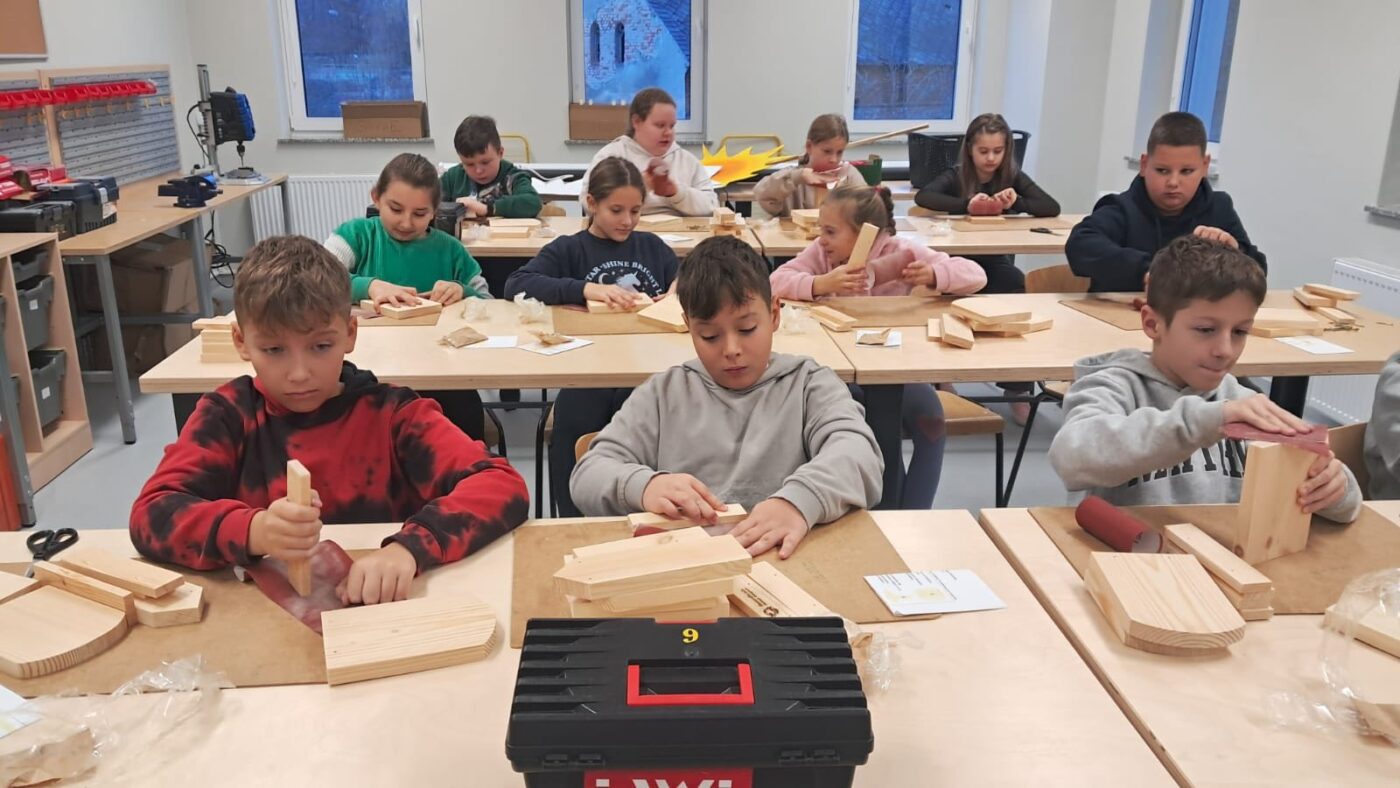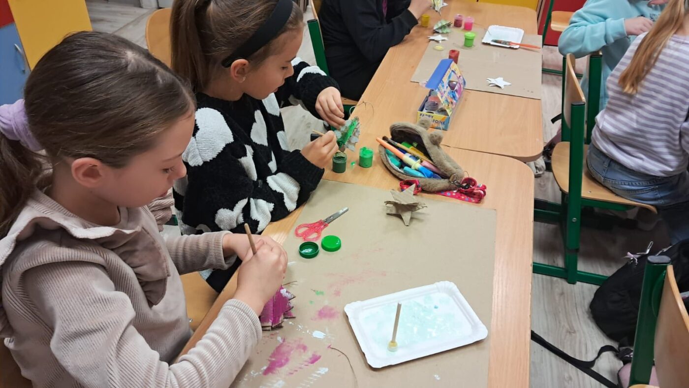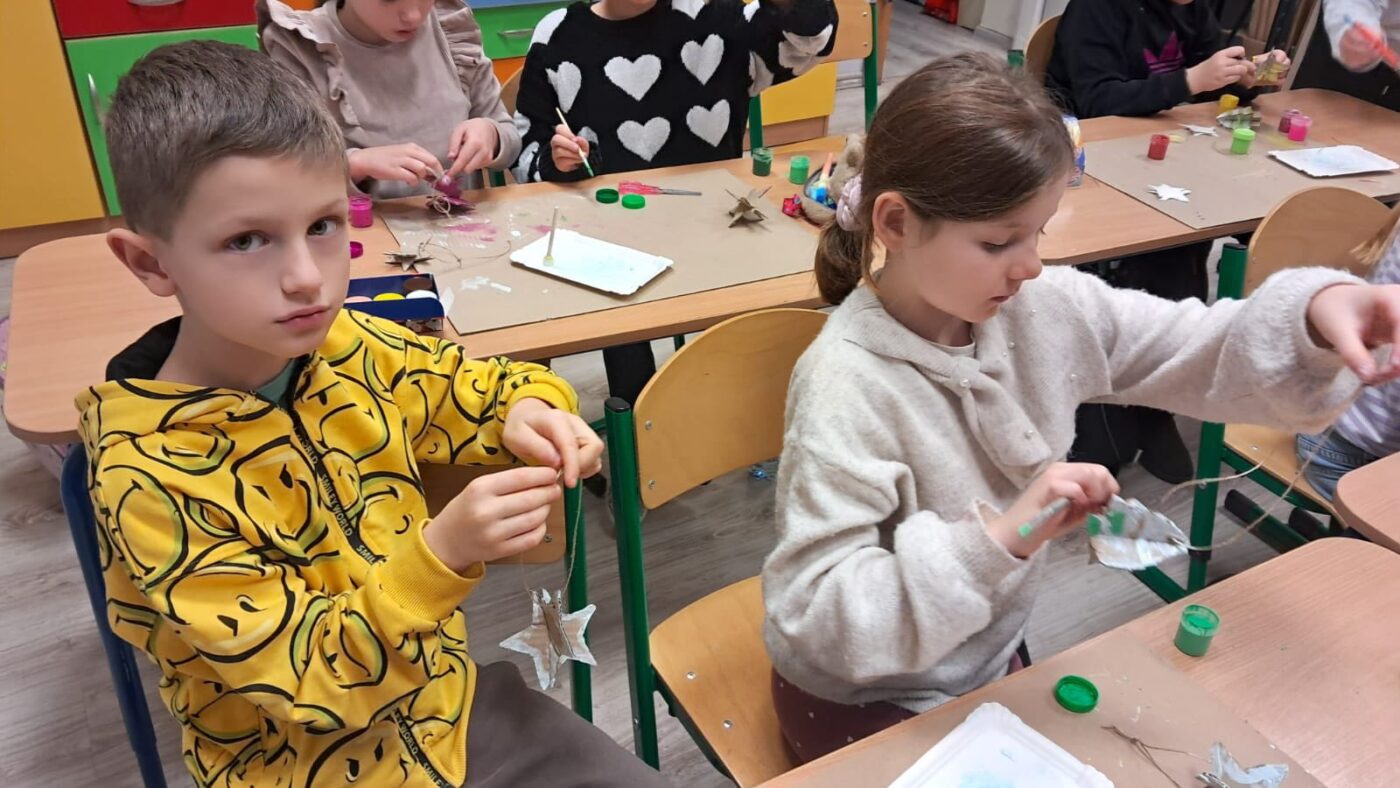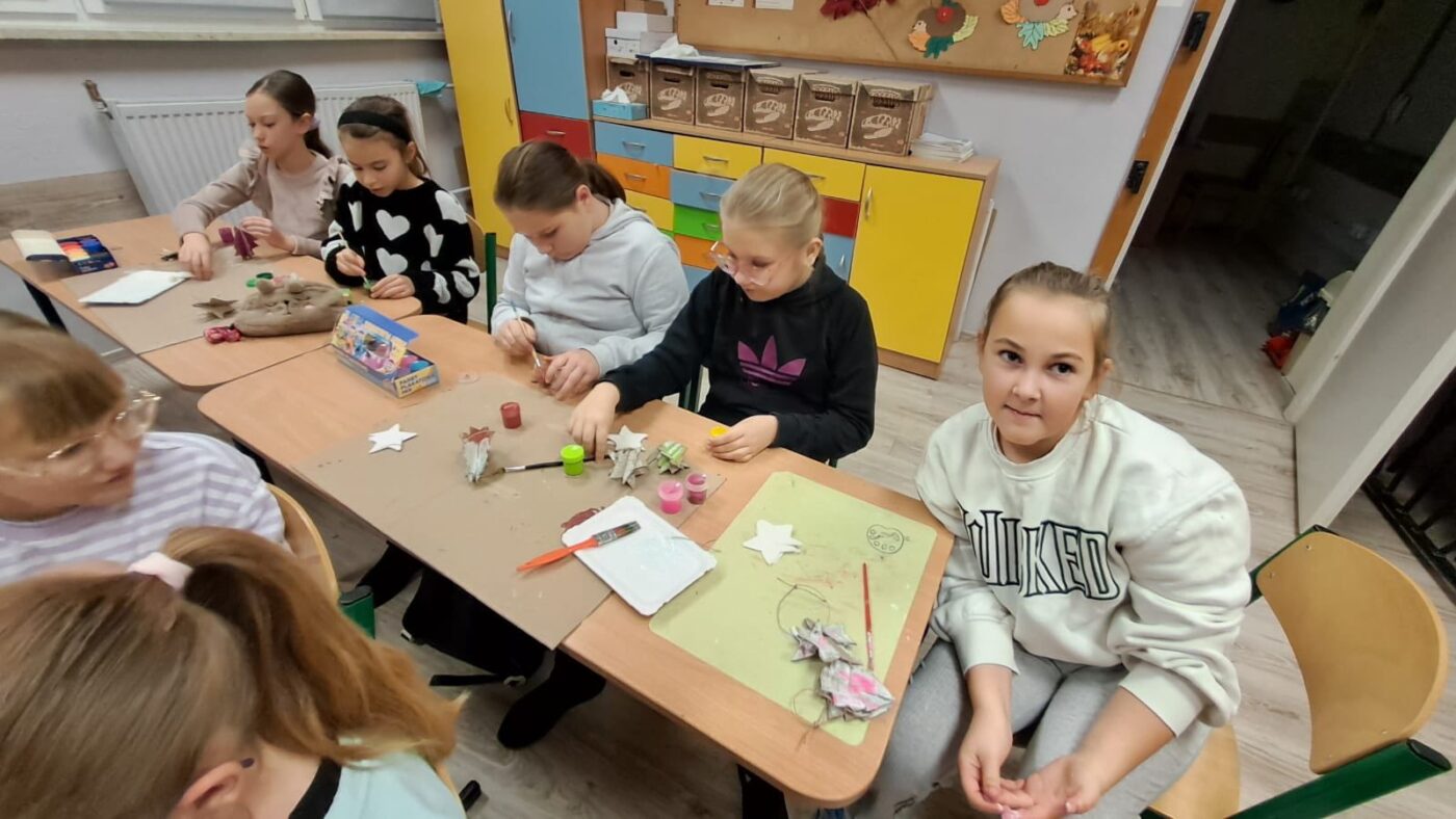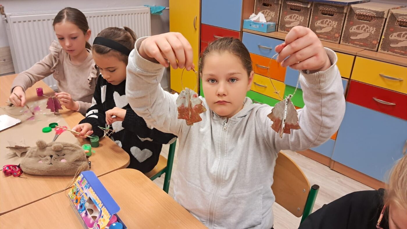 Grupa I – Bioróżnorodność – wykonuje ozdoby choinkowe z kartonu.