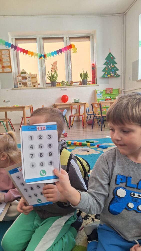 W odziałach przedszkolnych miniony tydzień był poświęcony tematyce bezpieczeństwa oraz pierwszej pomocy przedmedycznej. Dzieci poznały/przypomniały sobie numery alarmowe, dowiedziały się w jakich sytuacjach mogą zadzwonić pod numer alarmowy, jakie informacje przekazać dyspozytorowi, uczyły się jak układać poszkodowanego w pozycji bocznej bezpiecznej. Poruszone zostały również treści z preorientacji zawodowej, dzieci dowiedziały się jakie służby mogą nam pomóc w sytuacji zagrożenia, czym zajmują się policjanci, strażacy oraz ratownicy medyczni oraz jakich sprzętów używają w pracy.