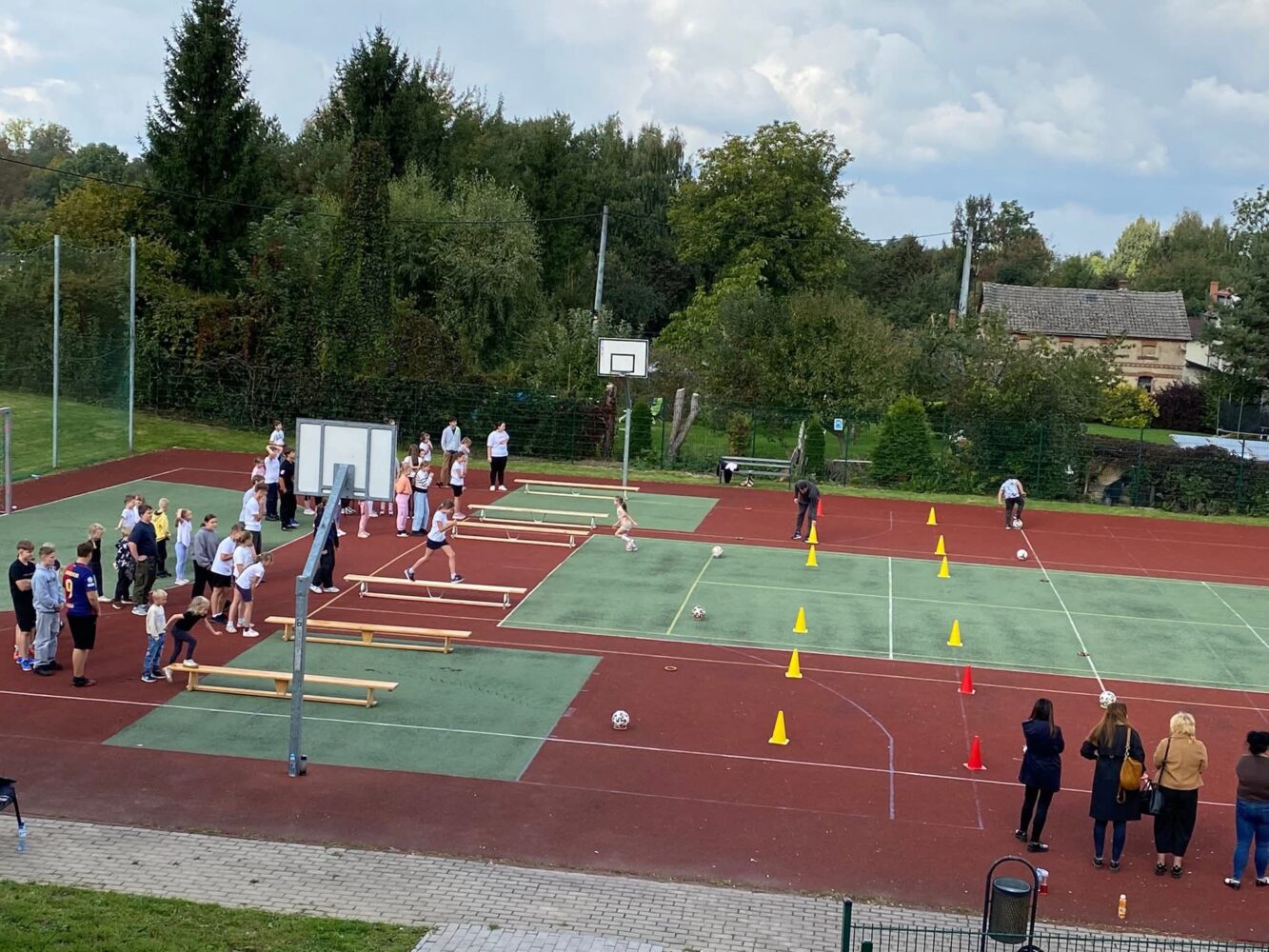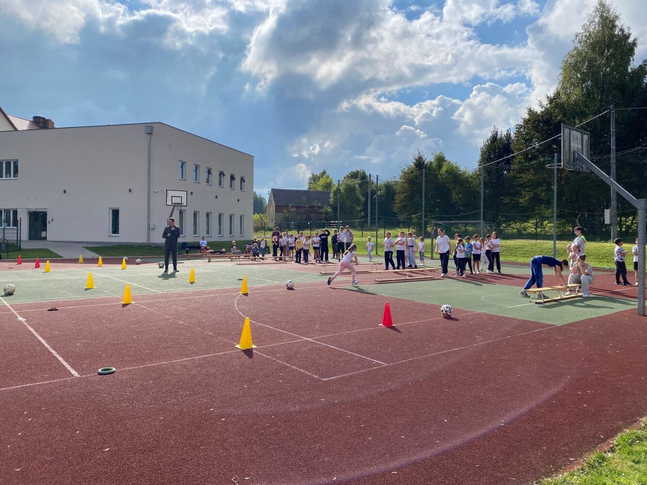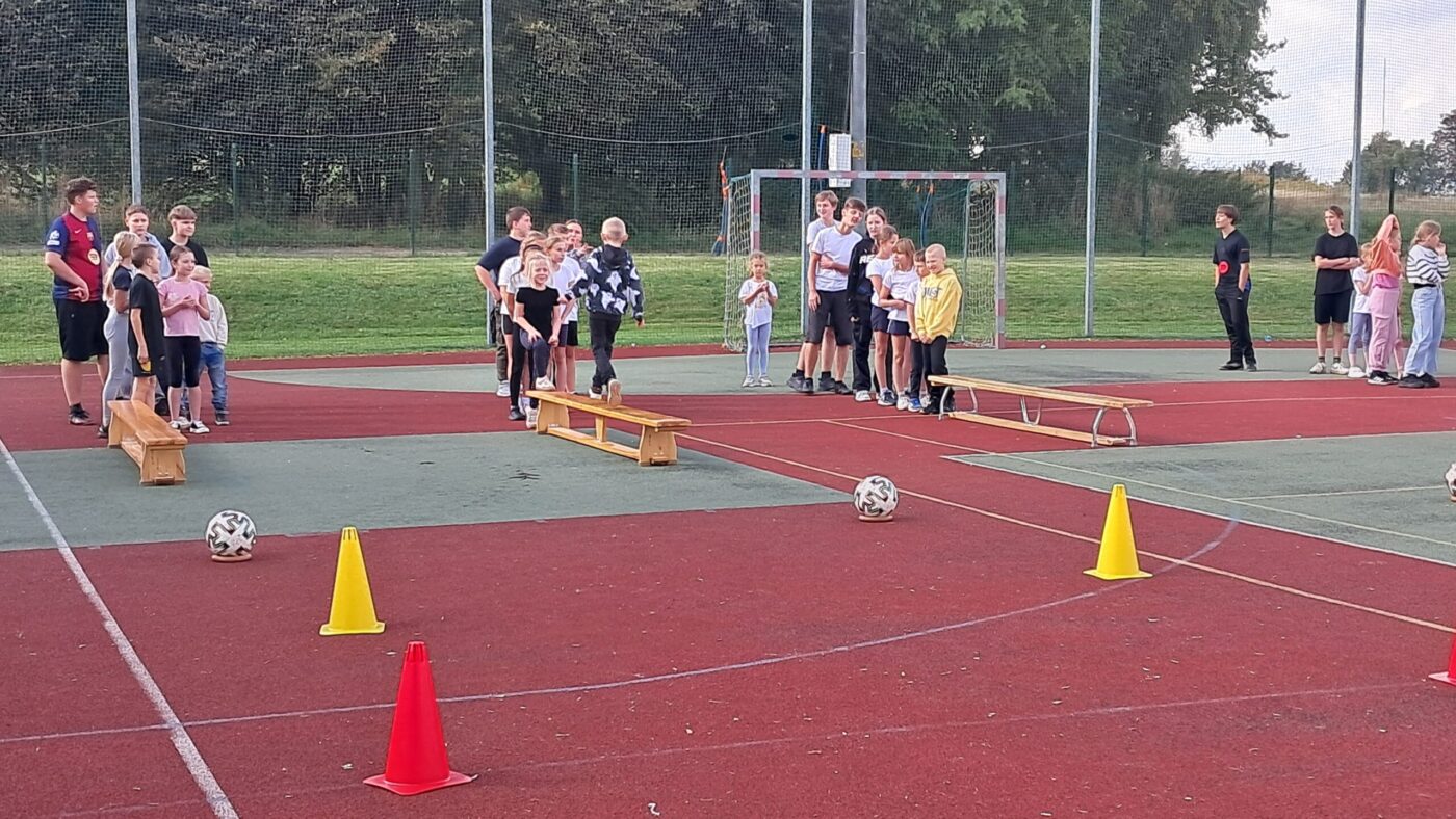 - Aktywna przerwa – w ramach wydarzenia na długiej przerwie zorganizowaliśmy małe zawody, w których na zwinnościowym torze przeszkód rywalizowali uczniowie praktycznie z całej szkoły.