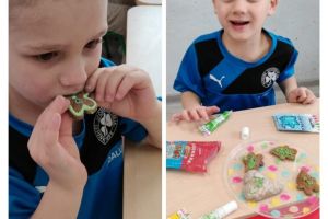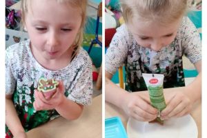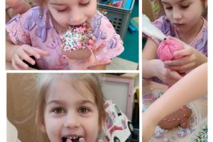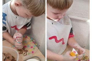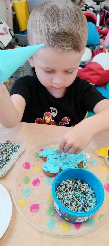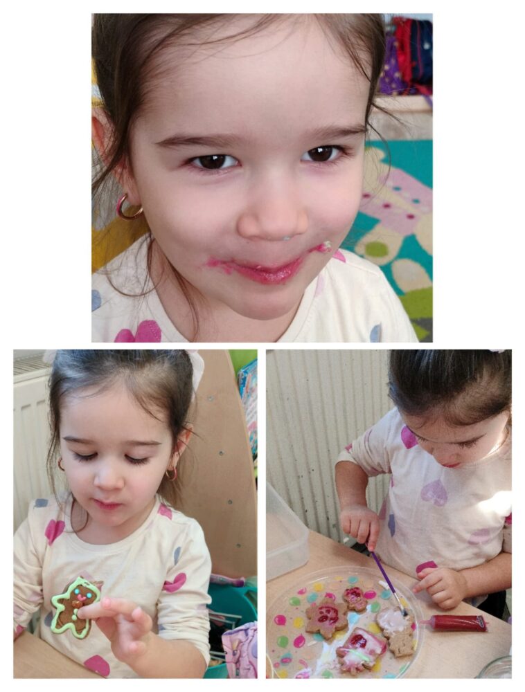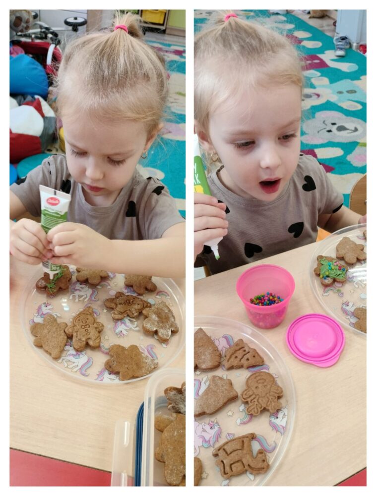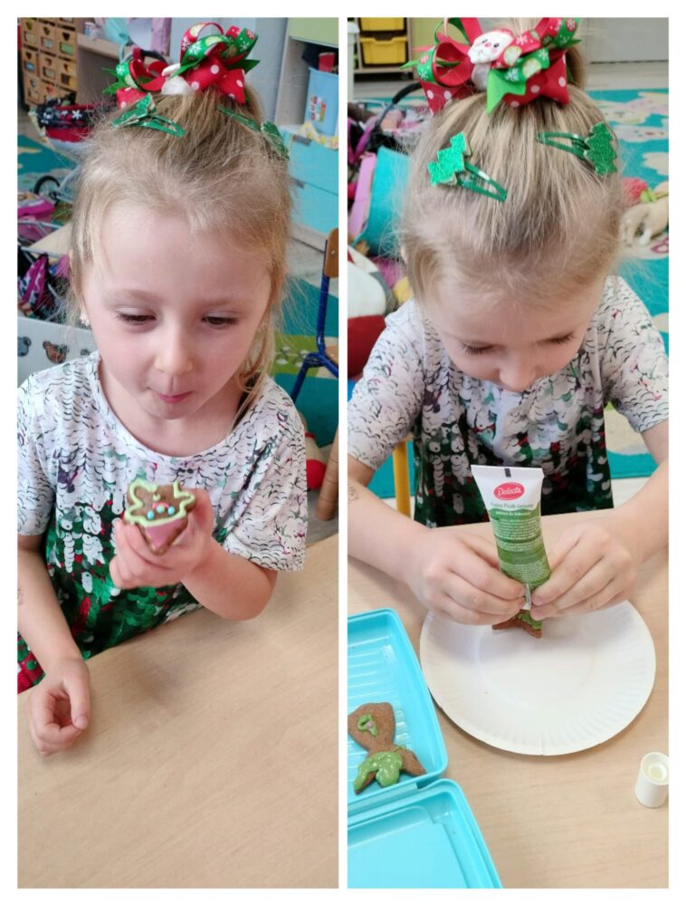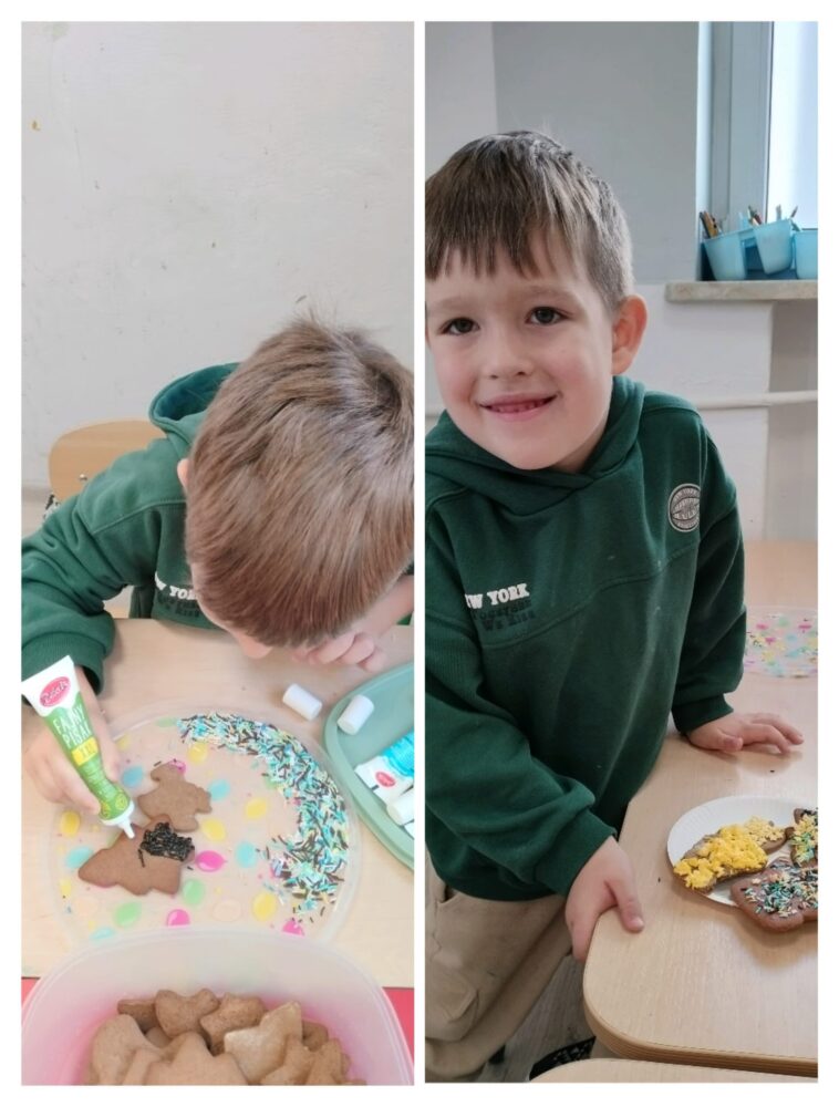 W naszych grupach przedszkolnych zrobiło się ostatnio wyjątkowo słodko i pachnąco! To pełne radości i twórczej zabawy spotkanie wprowadziło dzieci w magiczny, świąteczny nastrój. Dzieci z ogromnym zaangażowaniem dekorowały pierniczki kolorowymi lukrami oraz posypkami.