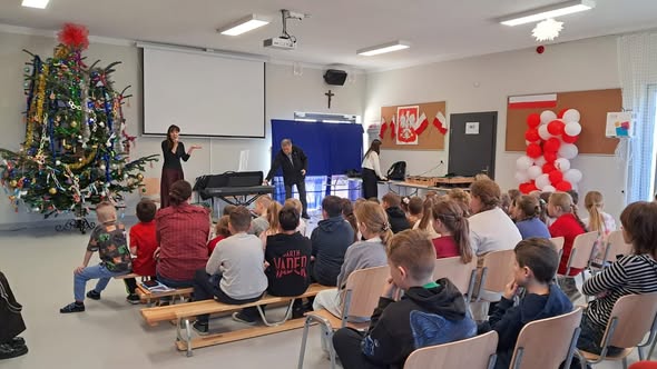15 grudnia kolejny raz gościliśmy Filharmonie z Jeleniej Góry z koncertem pt. Przedświąteczne zawirowania”. Kolędy i pastorałki wprowadziły nas w świąteczny nastrój a instrumenty