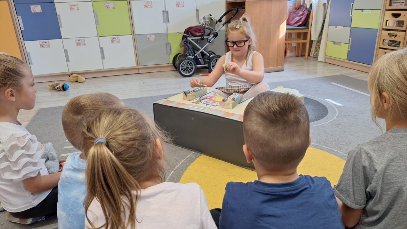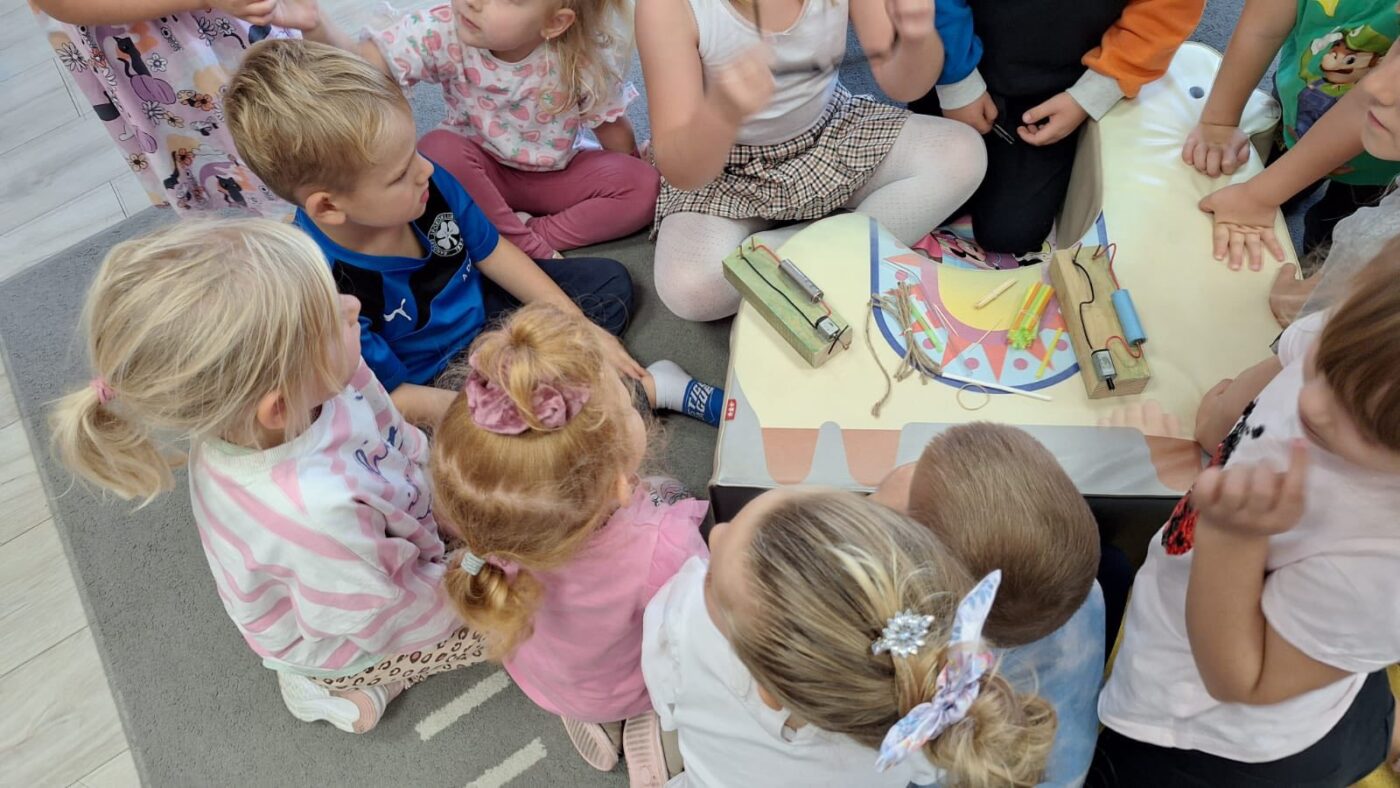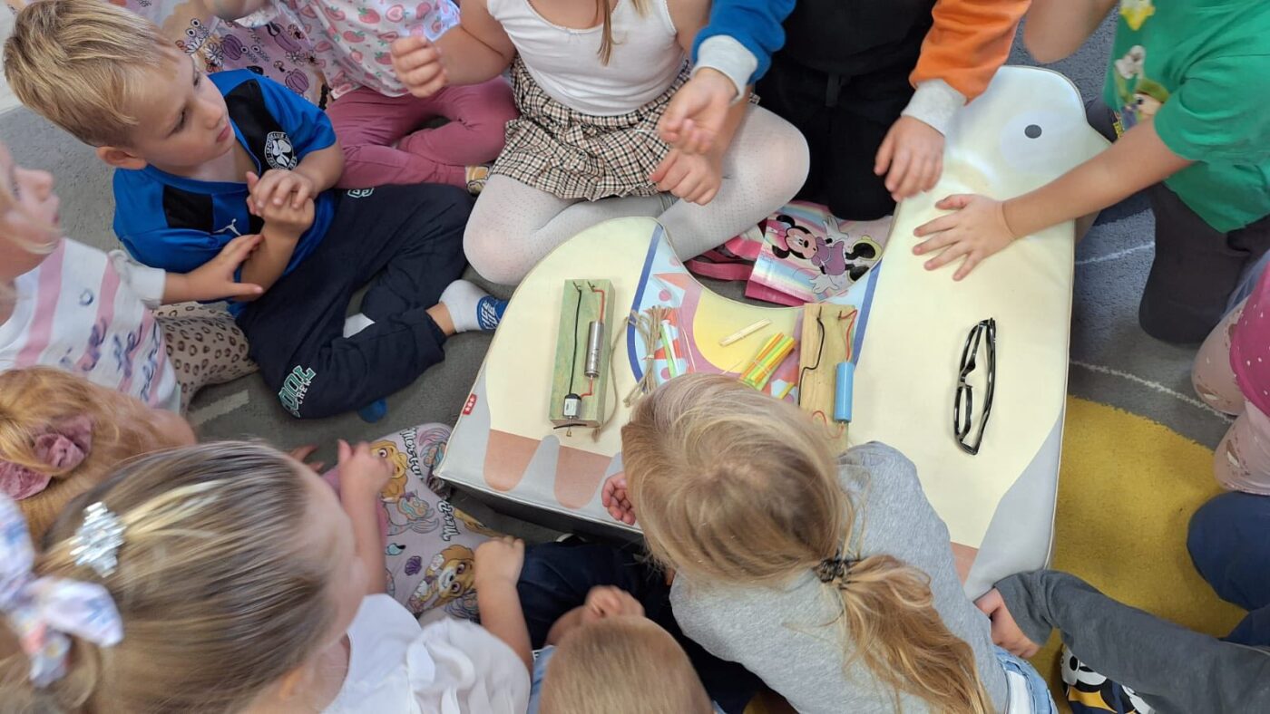 Dzisiaj przedszkolaki odwiedziła ”Pani Profesor fizyki”, która przeprowadziła ”profesjonalne” zajęcia na temat materiałów przewodzących prąd. Dziękujemy serdecznie młodej naukowczyni oraz jej ”zespołowi badawczemu”