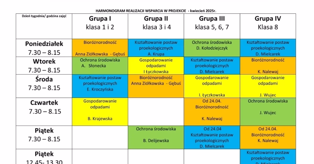 Grupa IV – 7.30 – 8.15 – Ochrona środowiska