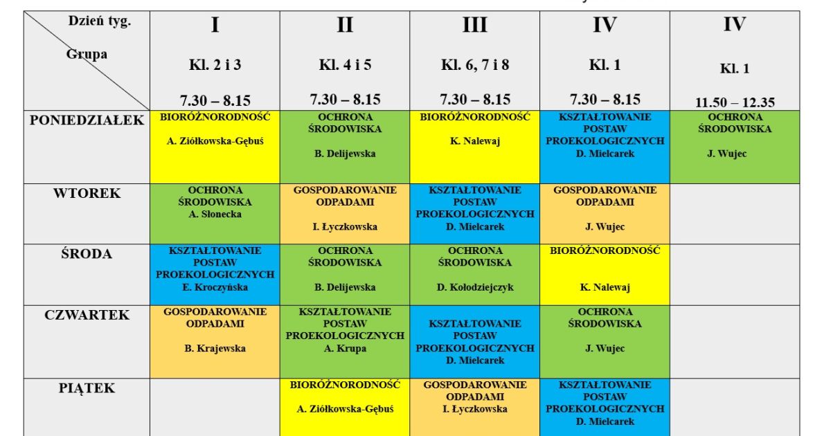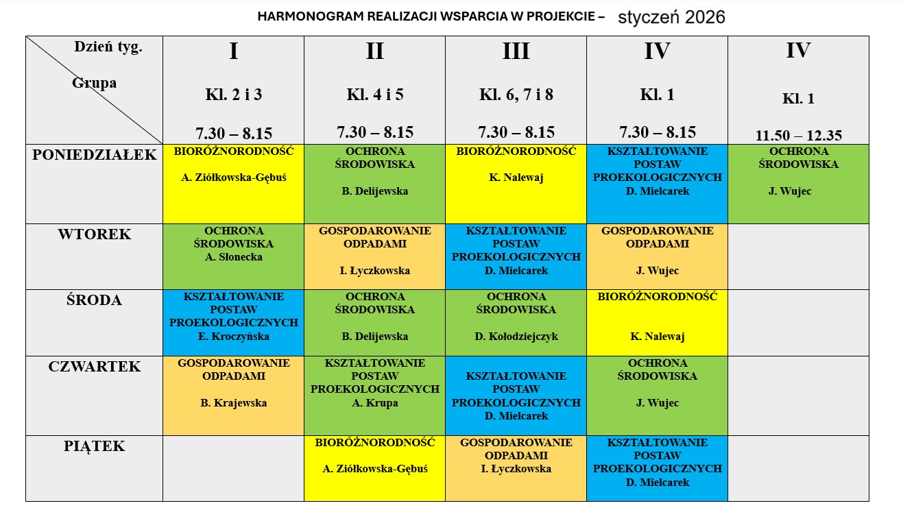 12.01.2026, 19.01.2026, 26.01.2026 (poniedziałek) – Ochrona środowiska, grupa IV, 11.50 – 12.35