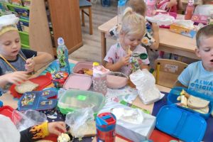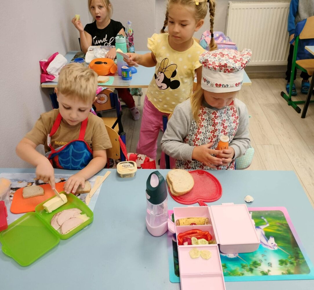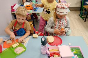 Oddziały Przedszkolne promują zdrowe odżywianie na zajęciach ”Kanapkowo”. W każdy wtorek dzieci uczą się samodzielnego komponowania i wykonywania kanapek. Ten dzień, jest również dniem bez słodyczy.