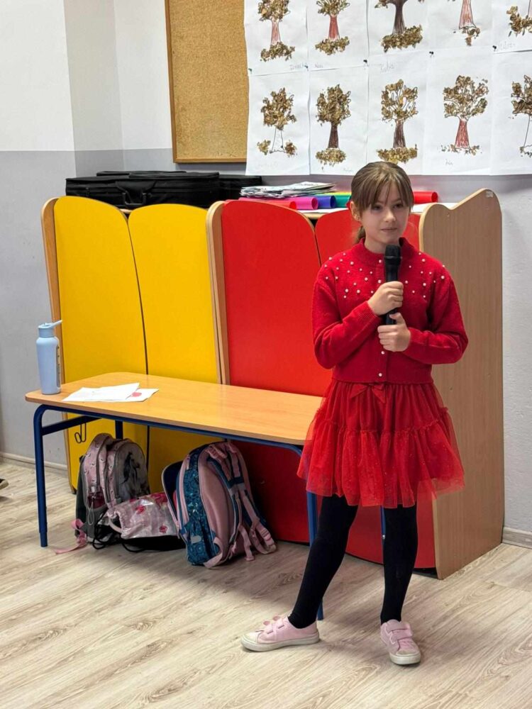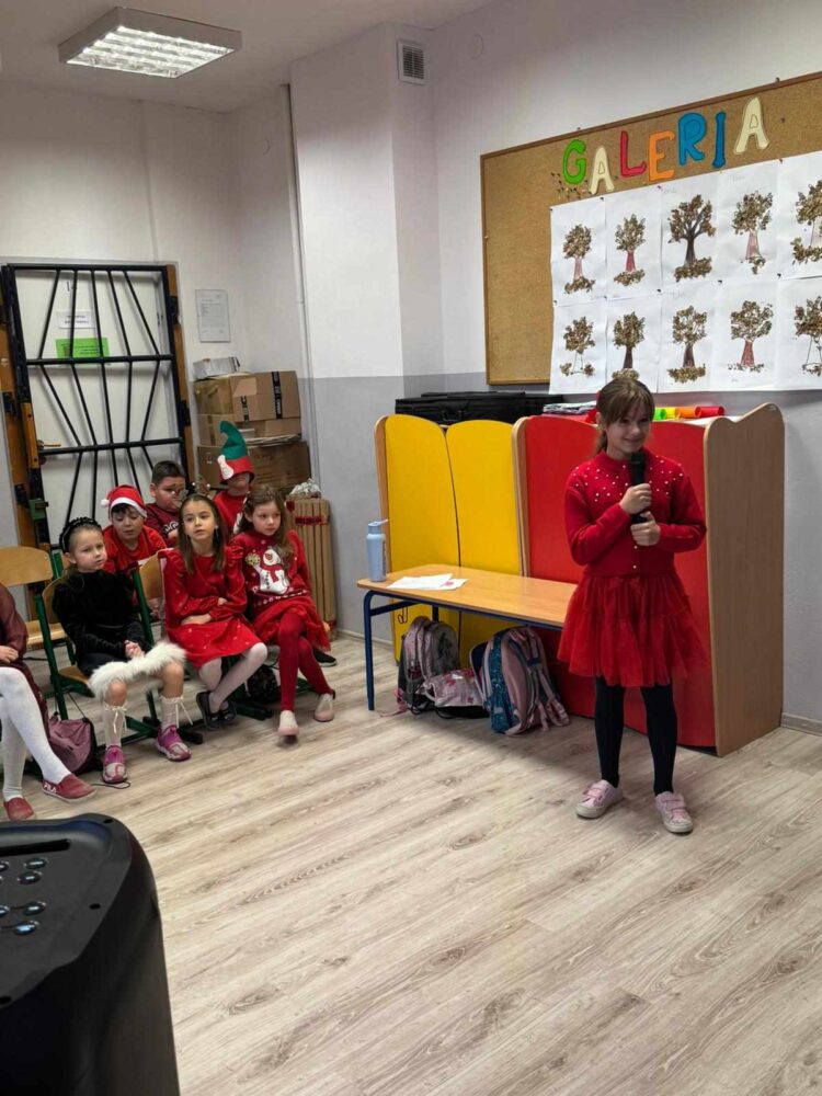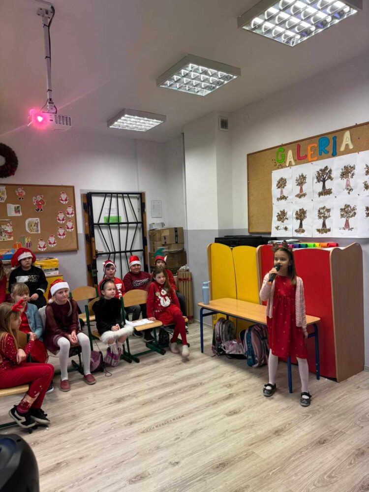 6 grudnia 2024 roku uczniowie klas I-III wzięli udział w konkursie piosenki świątecznej w języku angielskim. Dzieci zaprezentowały swoje umiejętności wokalne, wykonując przygotowane utwory.