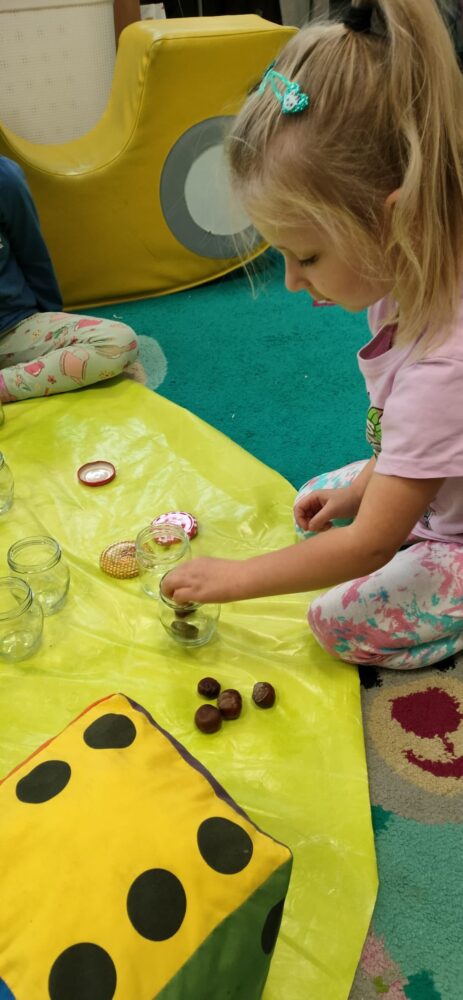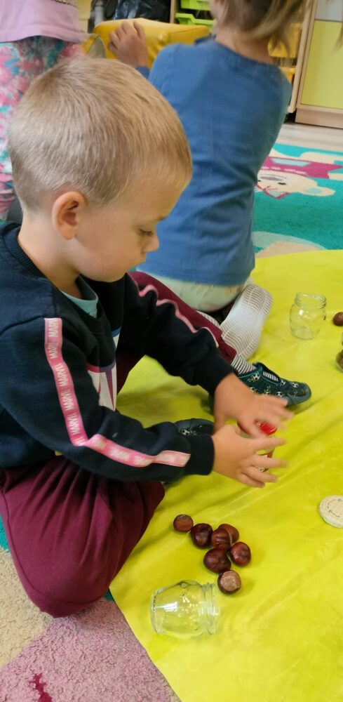 Tym razem dzieci pozytywnie zakręciły się na punkcie przeliczania oraz ćwiczeń motoryki małej wykonując zadanie „Zakręć- odkręć”.