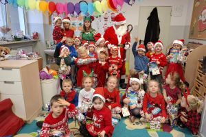 W zeszły piątek 6 grudnia odwiedził nas długo wyczekiwany tajemniczy gość z siwą brodą, w czerwonym stroju. Przedszkolaki przywitały go z piosenką na ustach. Mikołajowi tak bardzo spodobał się występ, że obdarował wszystkie dzieci prezentami.