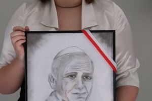 Następnie Dyrektor Szkoły Pan Dariusz Kołodziejczyk podziękował występującym oraz Nikoli Rychter z klasy VIII za przepiękny portret Św. Jana Pawła II, który zostanie przekazany dla SP im. Jana Pawła II w Sulikowie z okazji 80 rocznicy powstania szkoły.