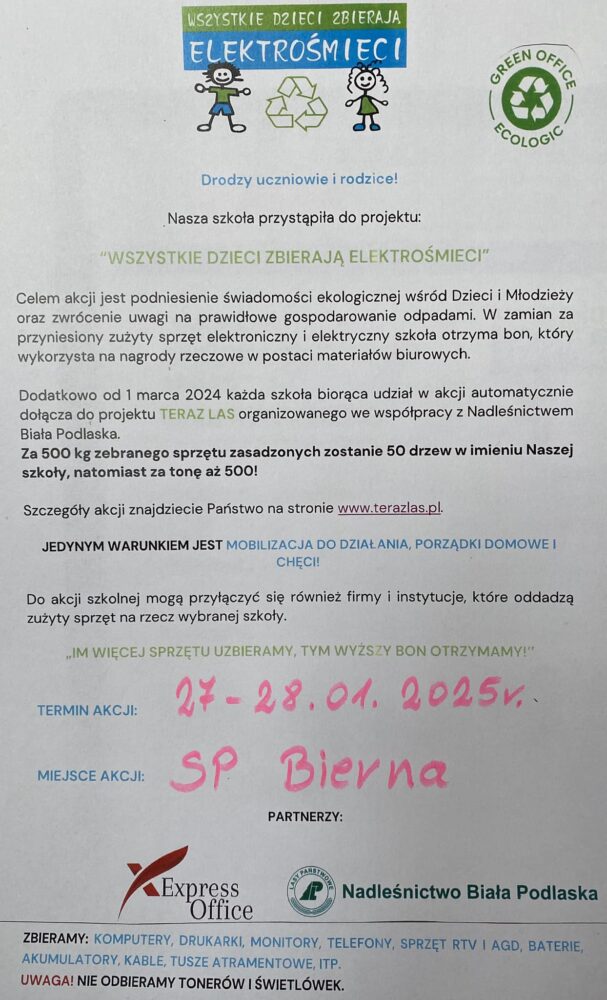 27 – 28 stycznia – Wszystkie dzieci zbierają ELEKTROŚMIECI