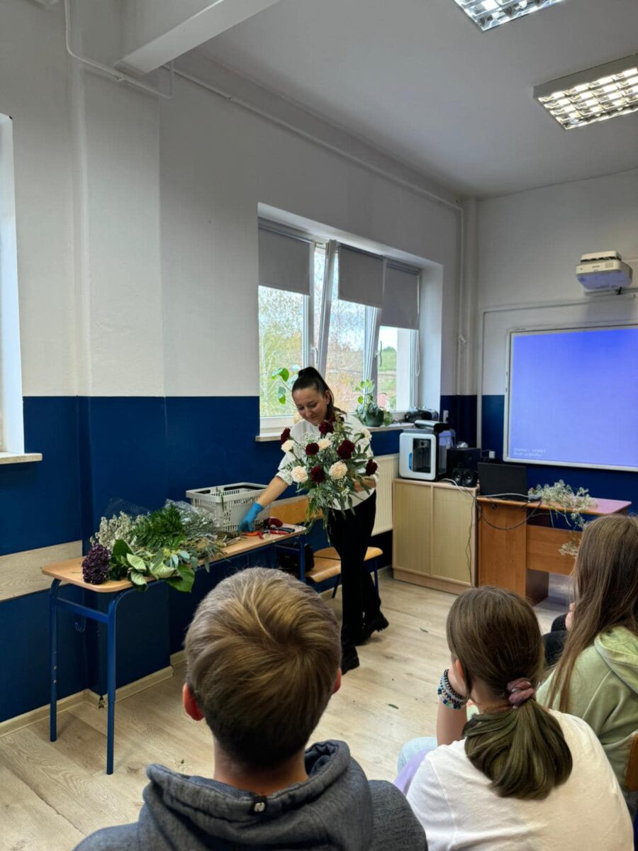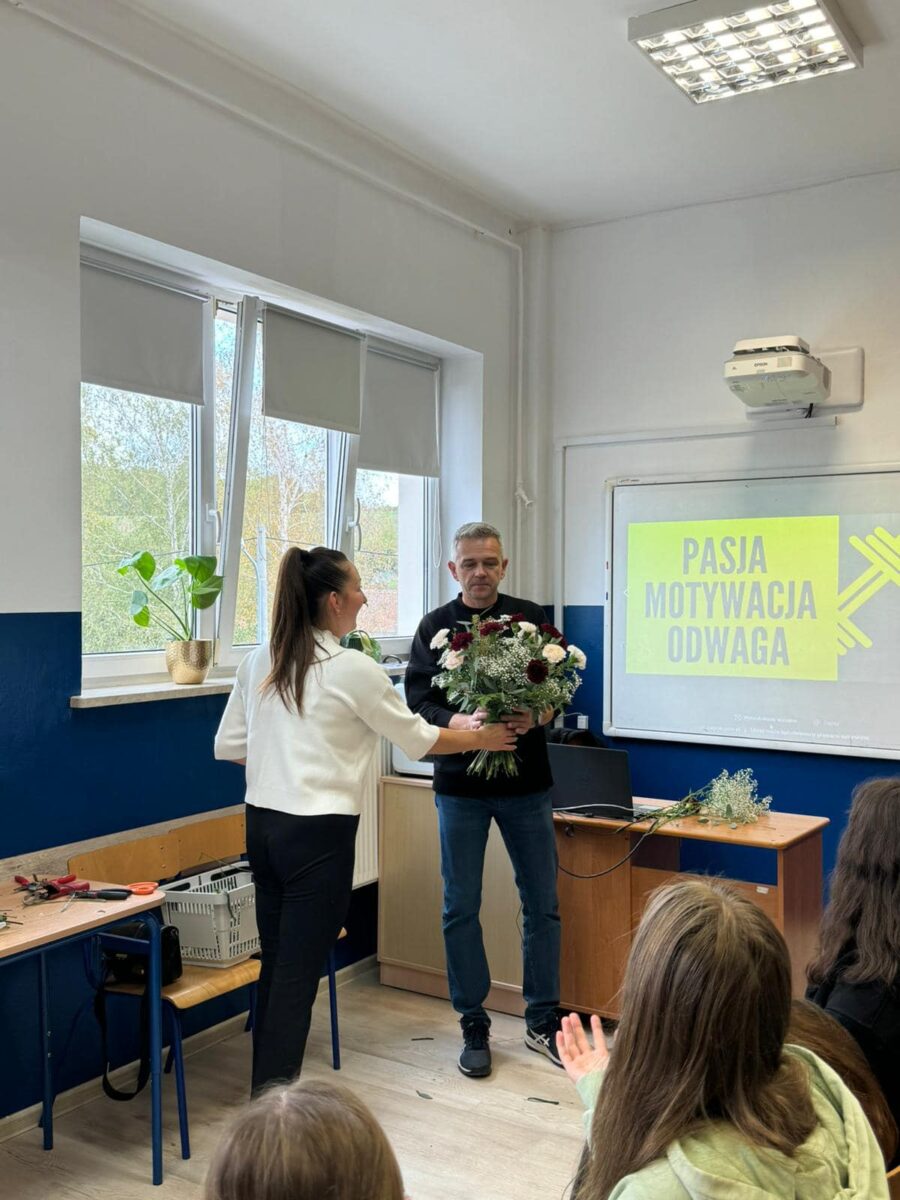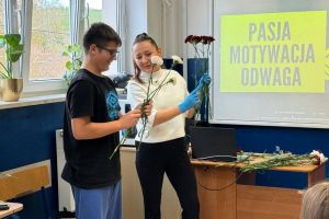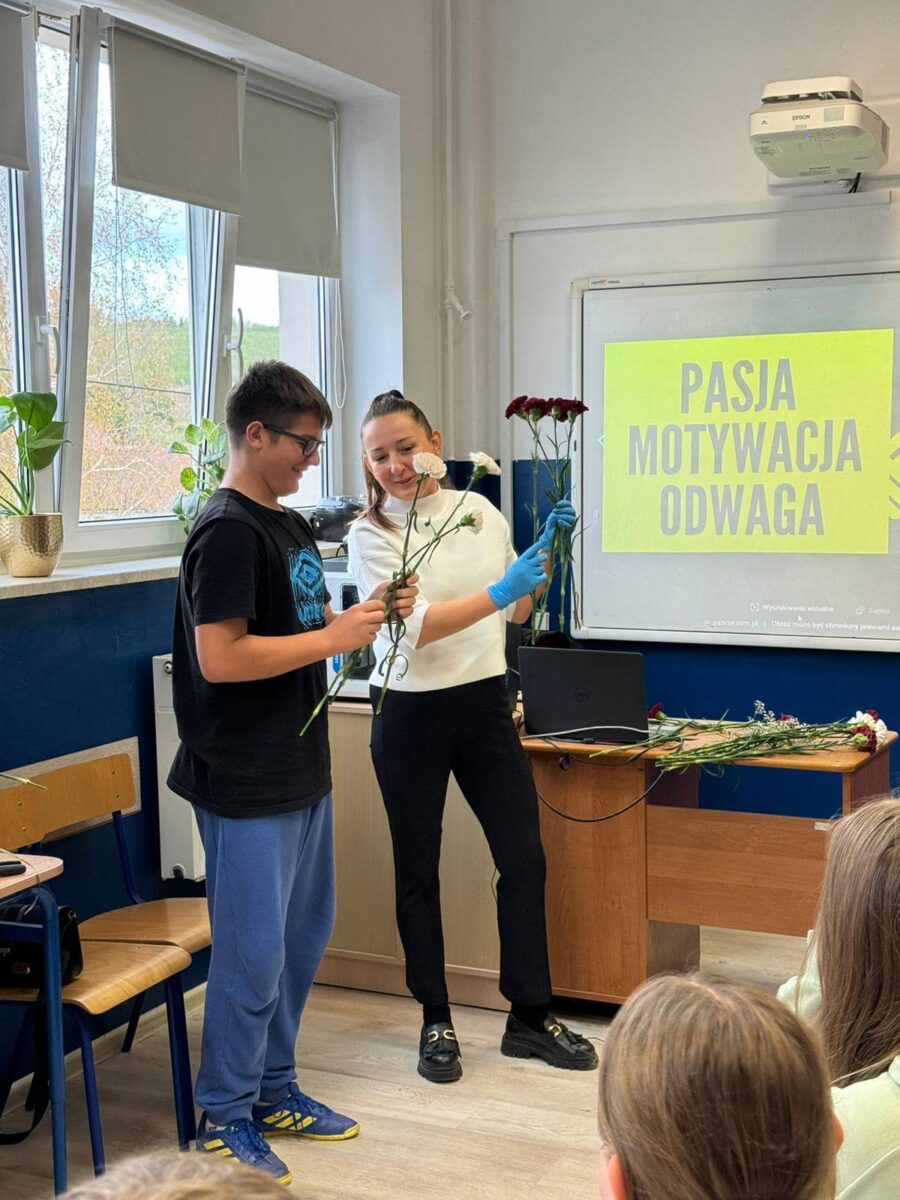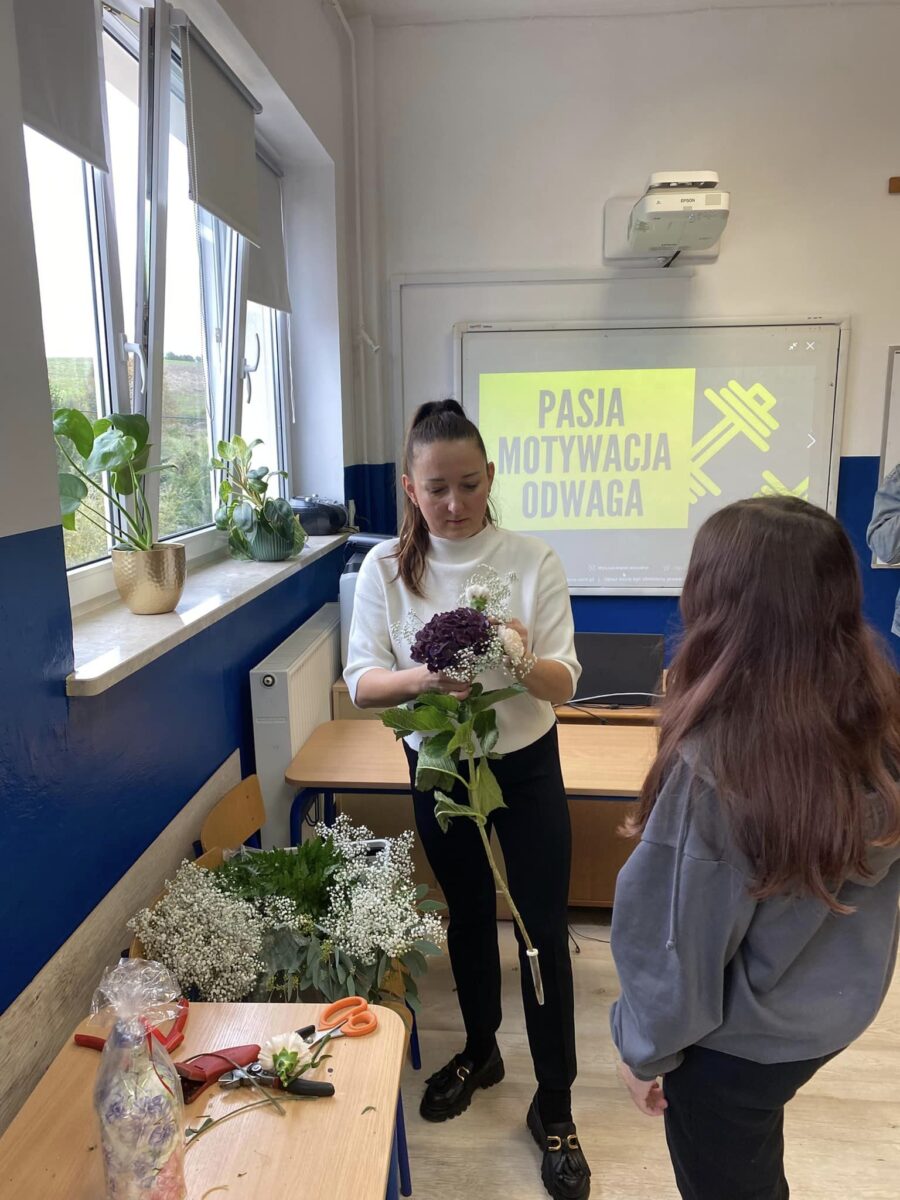 W dniu 15 października Pani Ania z firmy JURMIR ze Zgorzelca odwiedziła nas z okazji OGÓLNOPOLSKIEGO TYGODNIA KARIERY i opowiedziała o swojej pasji „układania” kwiatów, która stała się pomysłem na życie już od ponad dwudziestu lat.