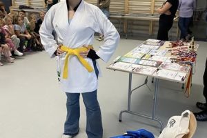 Podczas spotkania przybliżyła w jaki sposób trenuje, jakie są niezbędne elementy stroju oraz techniki karate i walka fary play. Zaprezentowała również zdobyte medale i dyplomy z zawodów. Życzymy Amelce dalszych sukcesów oraz samych złotych medali.