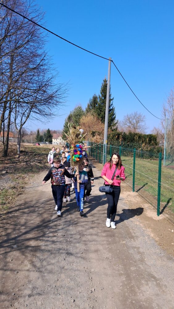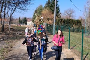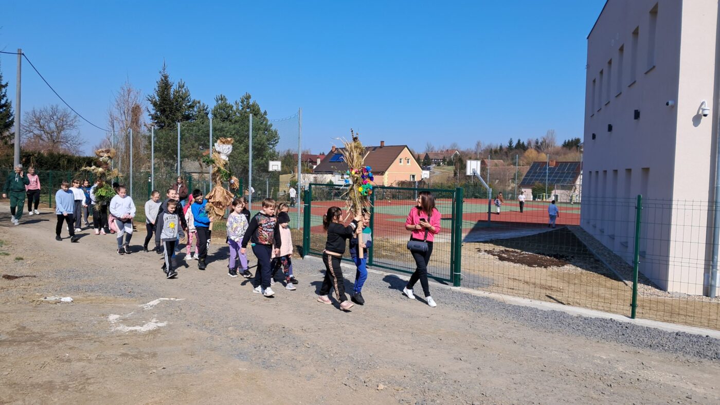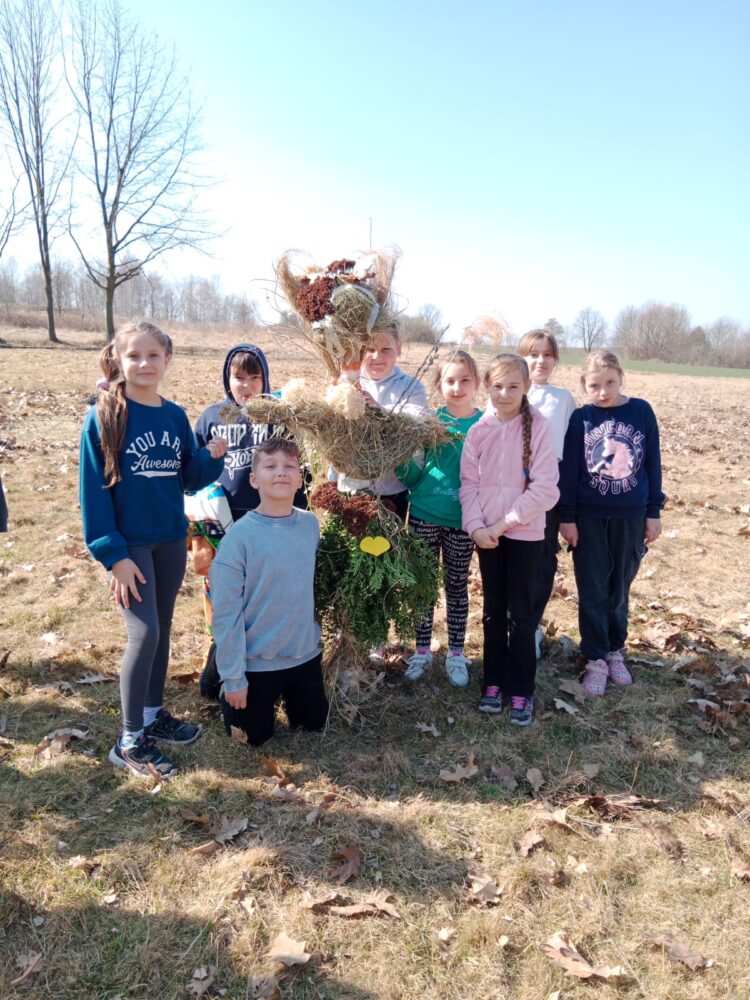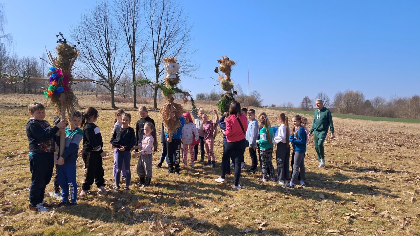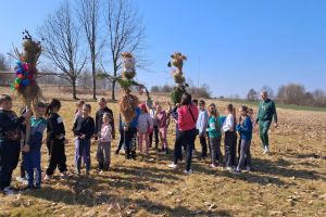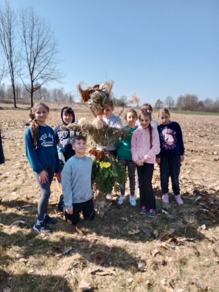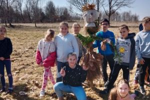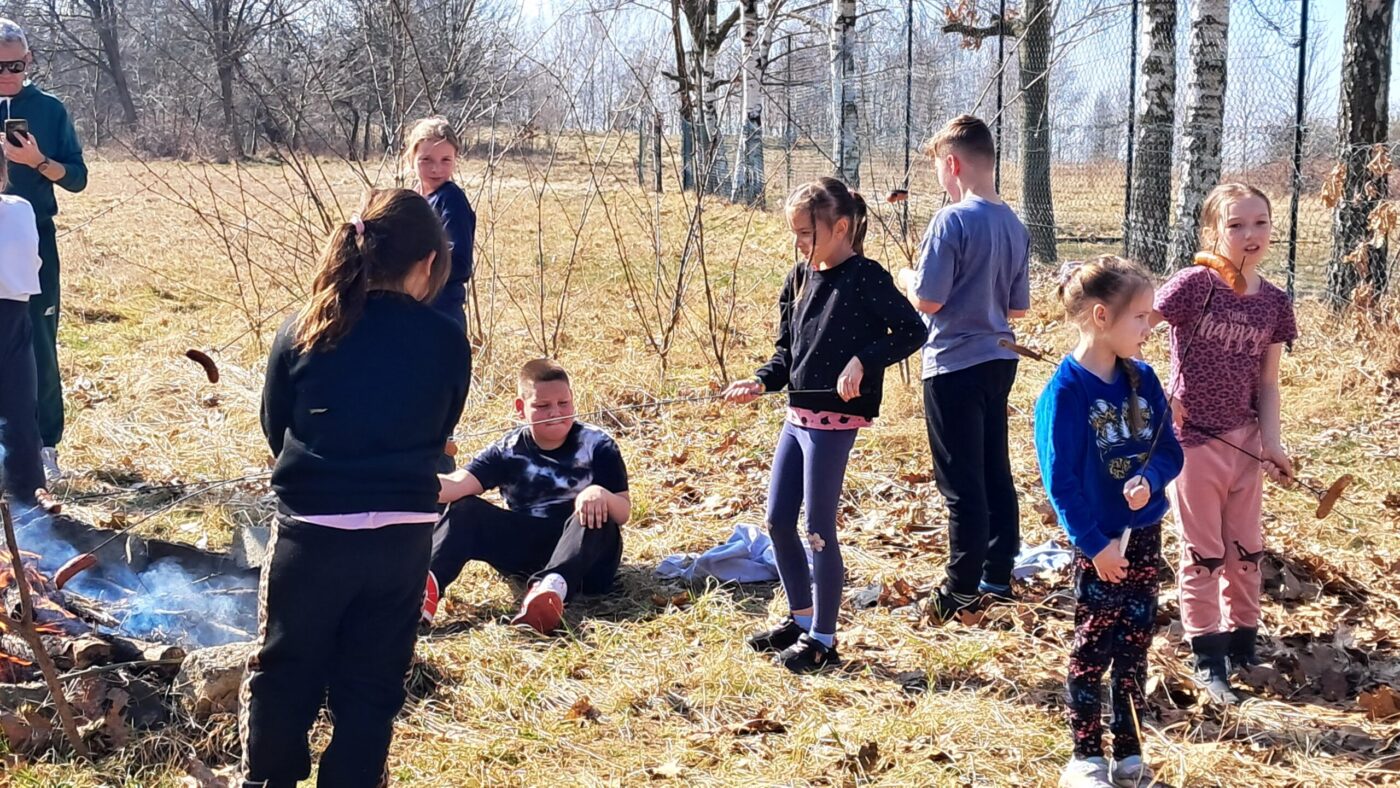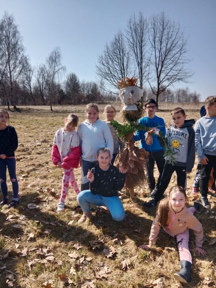 Dzieci z klas 1-3 starym zwyczajem wykonały piękne ekologiczne marzanny. Potem wybraliśmy się na spacer po wsi, żeby ze śpiewem na ustach pożegnać zimę i powitać wiosnę. Na koniec urządziliśmy piknik i pieczenie kiełbasek na ognisku.