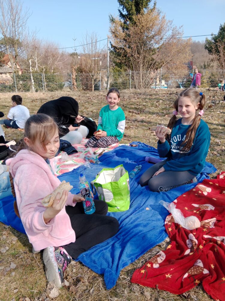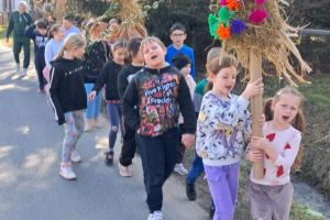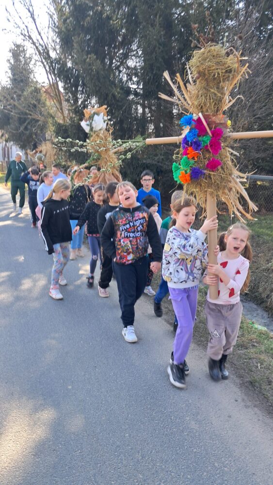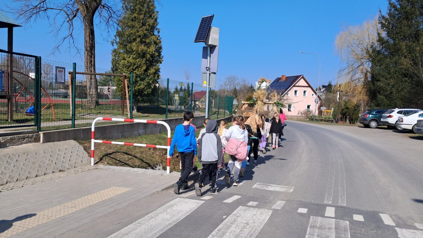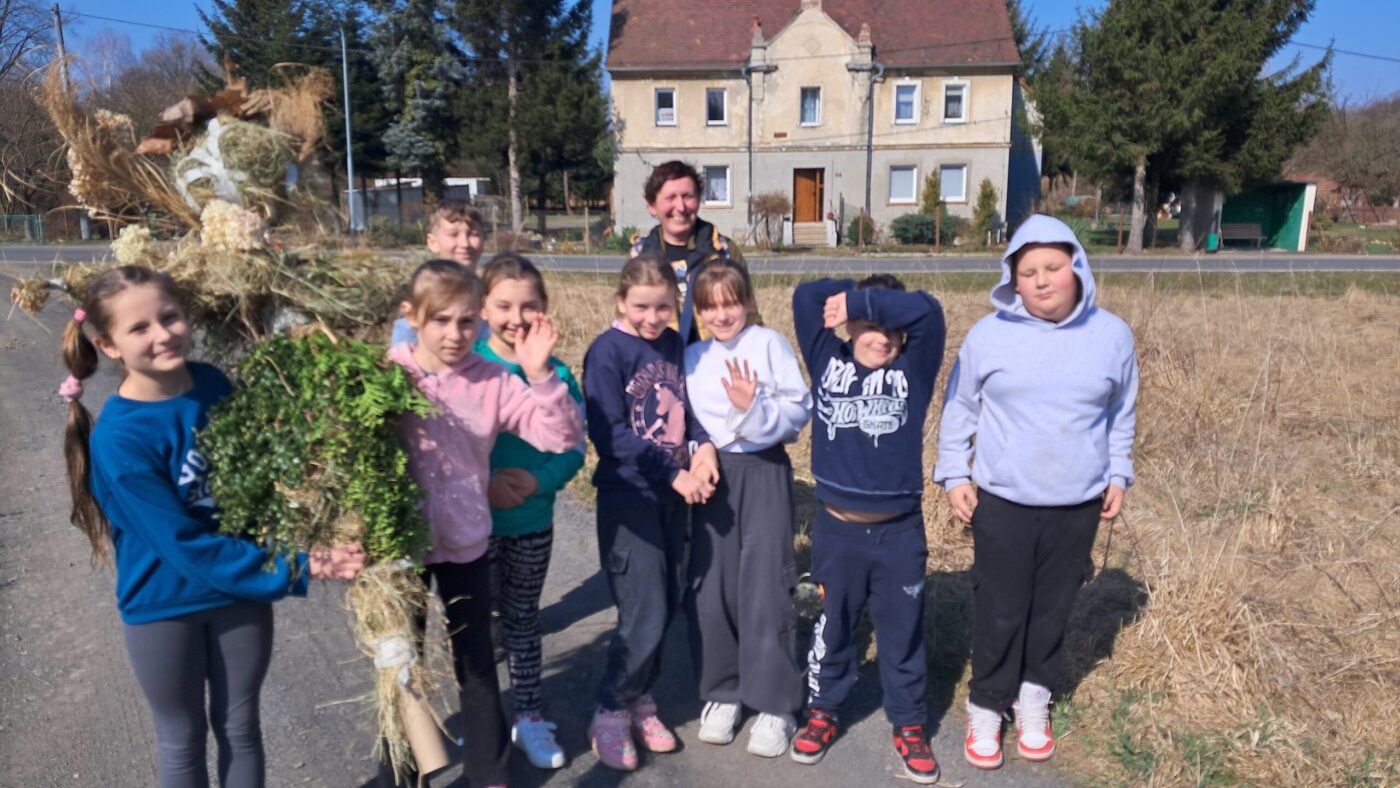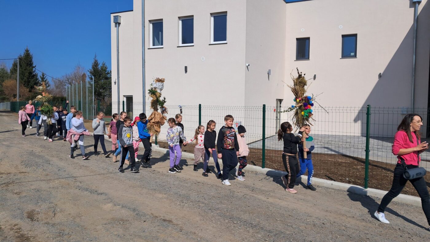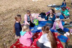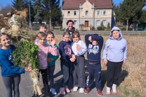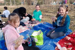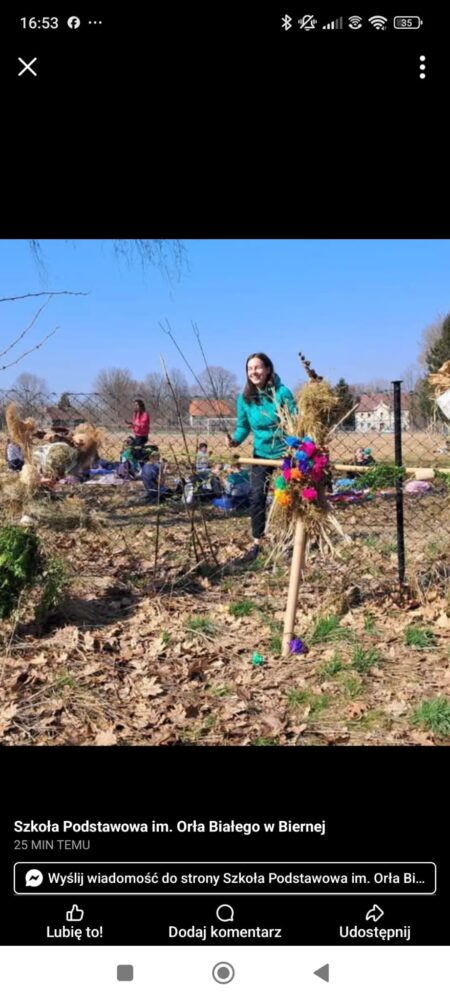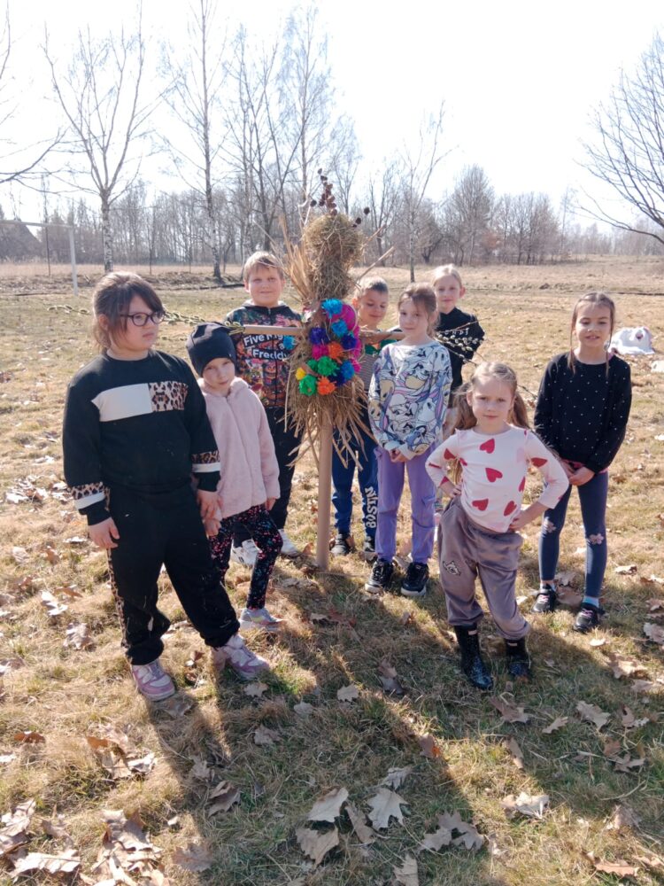 Dzieci z klas 1-3 starym zwyczajem wykonały piękne ekologiczne marzanny. Potem wybraliśmy się na spacer po wsi, żeby ze śpiewem na ustach pożegnać zimę i powitać wiosnę. Na koniec urządziliśmy piknik i pieczenie kiełbasek na ognisku.