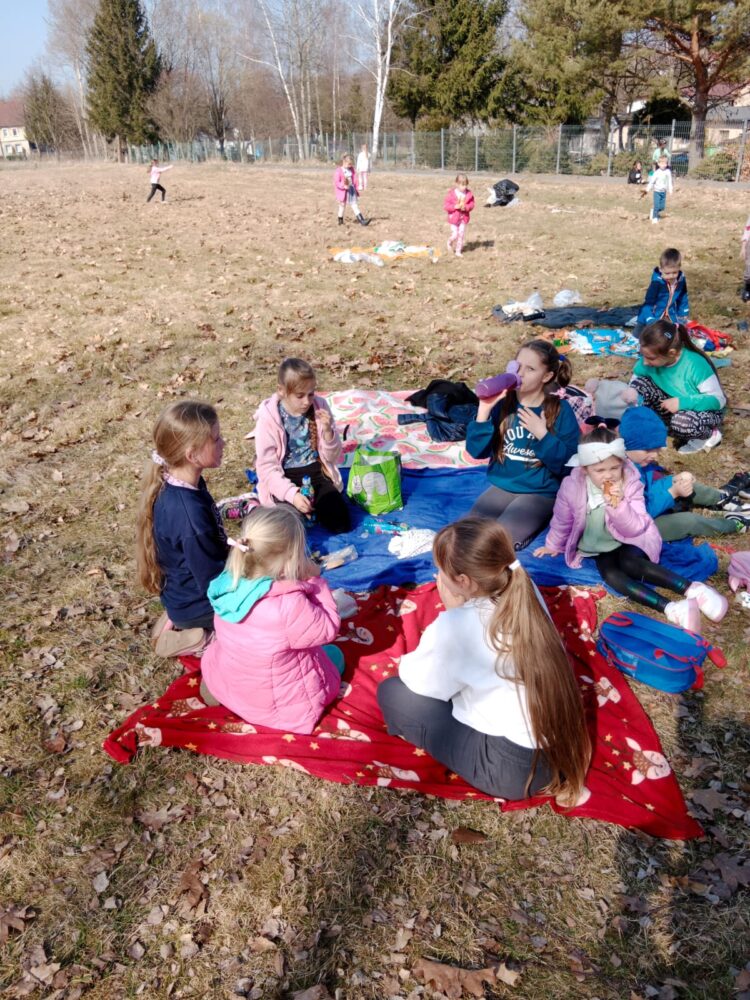 Dzień 21 marca jest pierwszym dniem kalendarzowej wiosny. Nasi uczniowie świętowali go pod chmurką, ciesząc się piękną wiosenną pogodą.