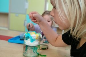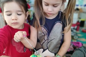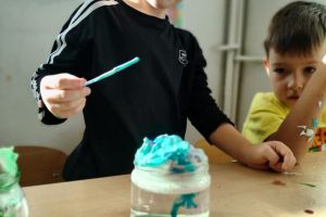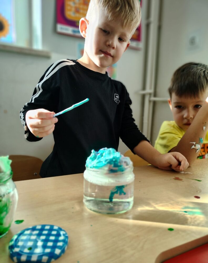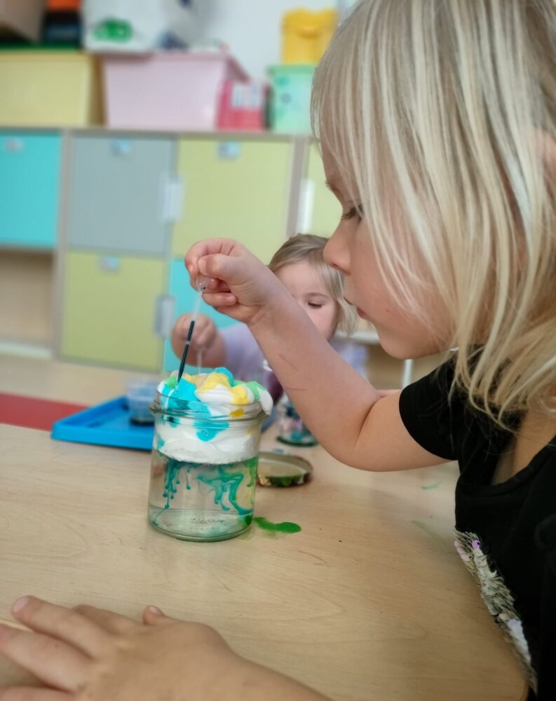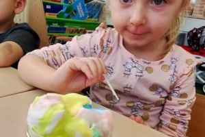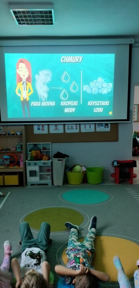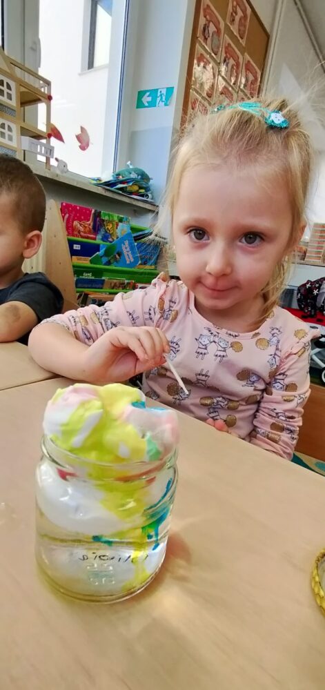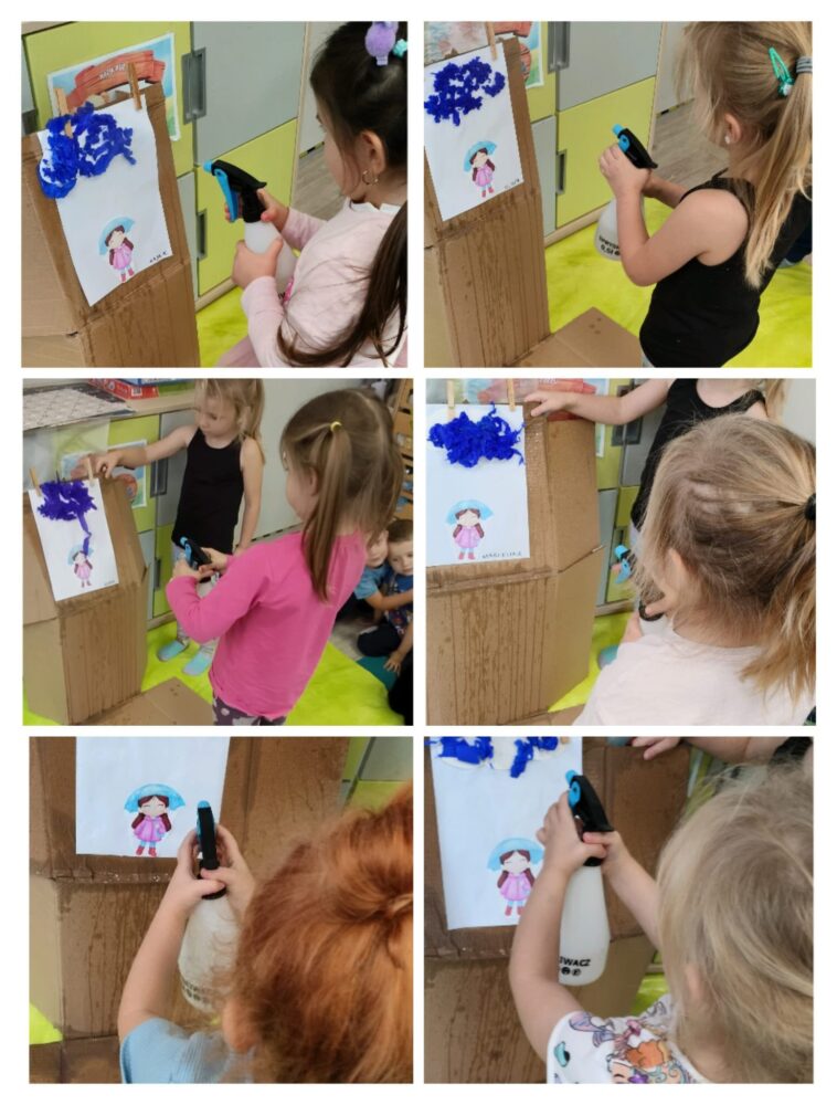 Zajęcia urozmaicił eksperyment podczas którego dzieci same mogły stworzyć kolorowy deszcz.