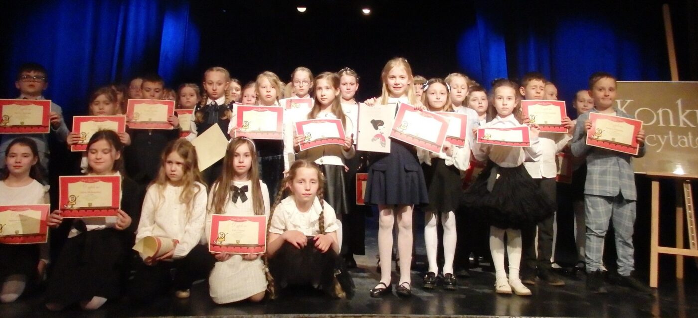 W dniu 9 kwietnia odbył się Powiatowy konkurs recytatorski dla klas I – III. Naszą szkołę reprezentowały utalentowane recytatorki: Gabriela Panasiewicz, Zofia Paluszek, Klara Sulima i Martyna Ziomek.