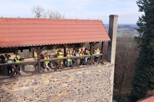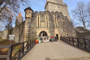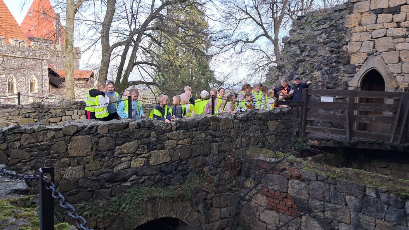 Kolejnym punktem wycieczki był Zamek Grodziec – późnogotycka budowla, która znajduje się na Pogórzu Kaczawskim na wysokości 389 m n.p.m. Podczas zwiedzania poznaliśmy historię zamku, odwiedziliśmy zbrojownię, ale największą atrakcją był spacer po murach obronnych, przejście wąskimi korytarzami i wejście na wieżę, z której rozciągał się malowniczy widok.