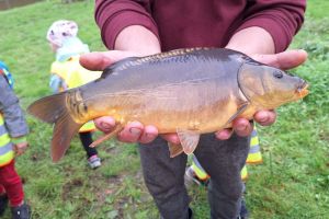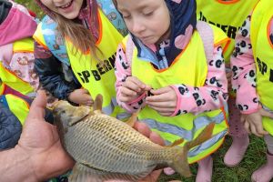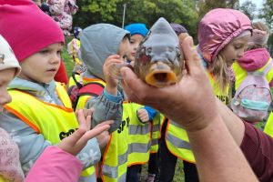 Spotkanie z żywą rybą pozostanie na długo w pamięci milusińskich…