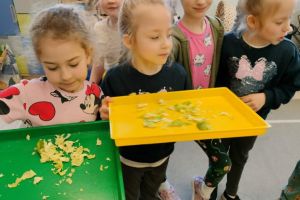 Do zabaw przy muzyce zaprosiła nas bohaterka brukselka Blanka. Na dzieci czekały również: wielozmysłowe poznawanie brukselki, „brukselkowa ruletka”, zabawa kreatywna „modne brukselki”, wyścigi w obieraniu brukselki, brukselkowa piłka ręczna, zabawy matematyczne, wykonanie książeczek pt. „W warzywniaku” oraz degustacja.