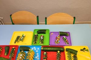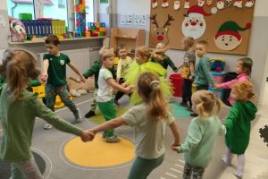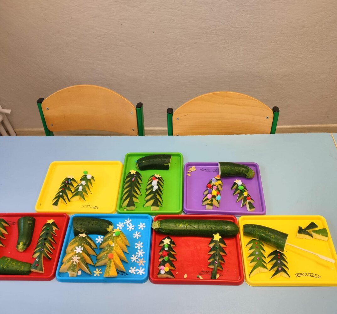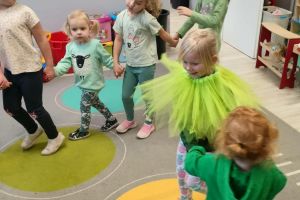 Oddziały przedszkolne zrealizowały kolejne warzywne wyzwanie w ramach projektu #witaminki. Tym razem dzieci miały okazję poznać wielozmysłowo cukinię. Rodzice zadbali o to, aby w tym dniu dominował kolor zielony. A wychowawczynie grup przedszkolnych przygotowały urozmaicone zajęcia przybliżające dzieciom to zielone warzywo. Oprócz ciekawostek związanych z odmianą dyni, pogadanek, były tańce i zabawy ruchowe przy piosence „Cukinia Celestyna”, gimnastyka, masażyki, degustacja cukinii, na zakończenie dzieci wykonały cukiniowe choinki oraz uzupełniły sylwetami cukinii Celestyny swoje książeczki – „ogródki warzywne” oraz plakat projektowy.
