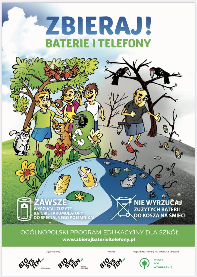 „Baterie i telefony w szkole zbieramy – planecie pomagamy”.