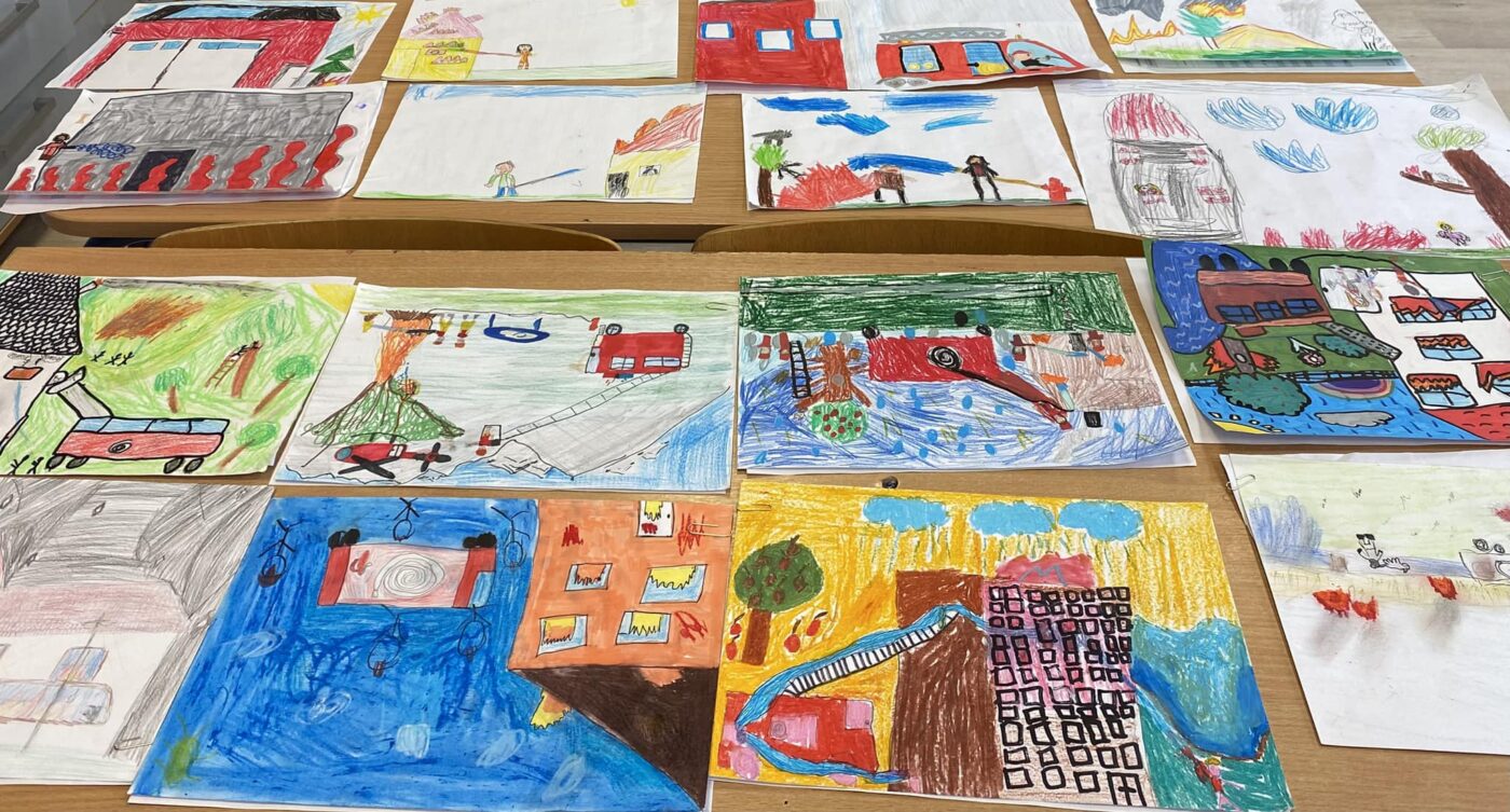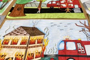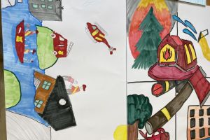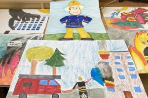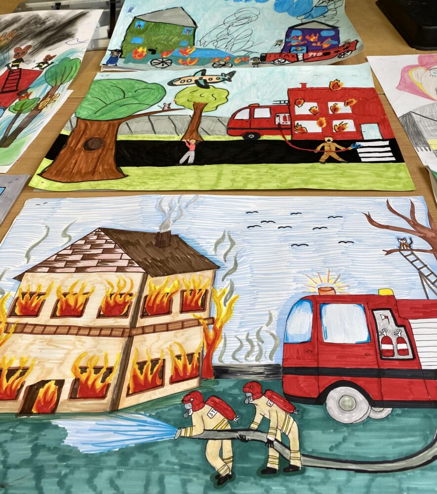 Etap szkolnego konkursu plastycznego pod hasłem ,,Ziemia, Woda, Powietrze- strażacy na straży ochrony środowiska’’
