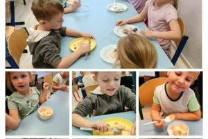 26 listopada w ramach „zdrowego dnia bez słodyczy” dzieci z oddziałów przedszkolnych 0A i 0B przygotowały same własną sałatkę owocową. Oczywiście było smacznie i zdrowo.