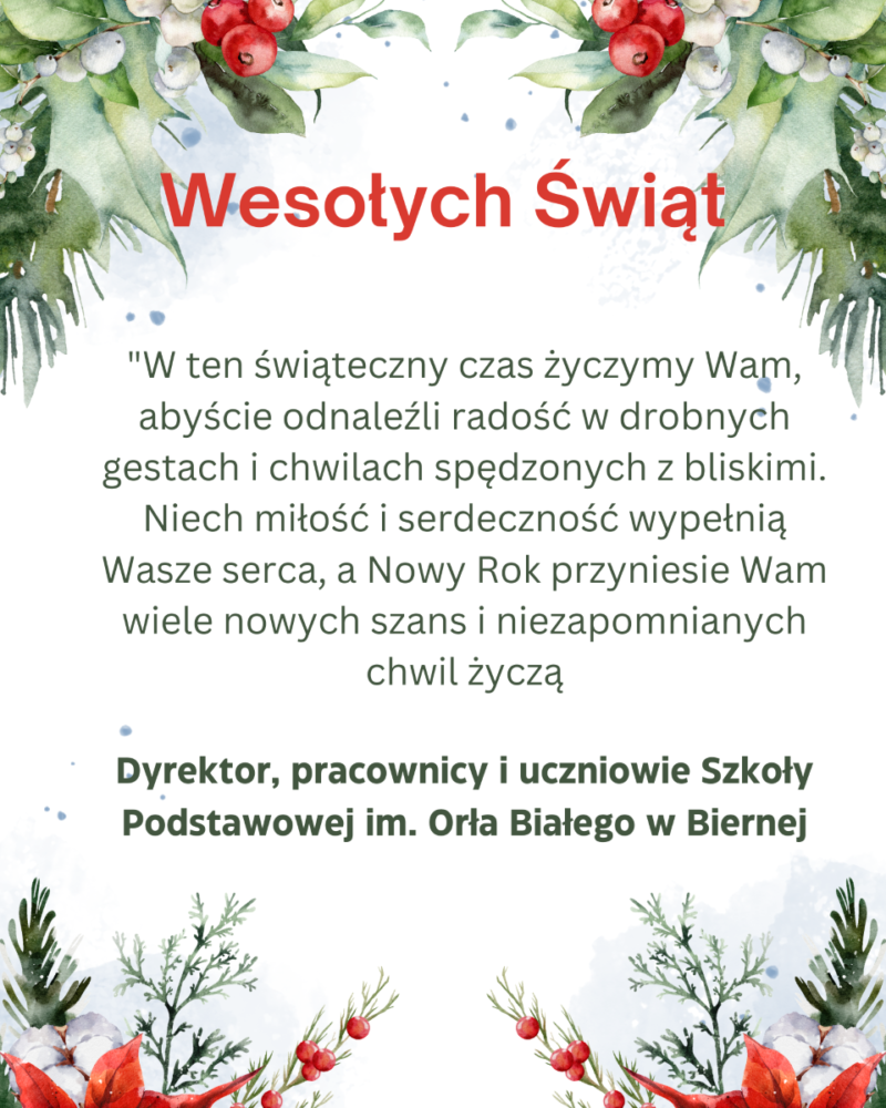 Pan dyrektor w ciepłych słowach życzył dla pracowników, uczniów i ich rodzin Wesołych Świąt Bożego Narodzenia.