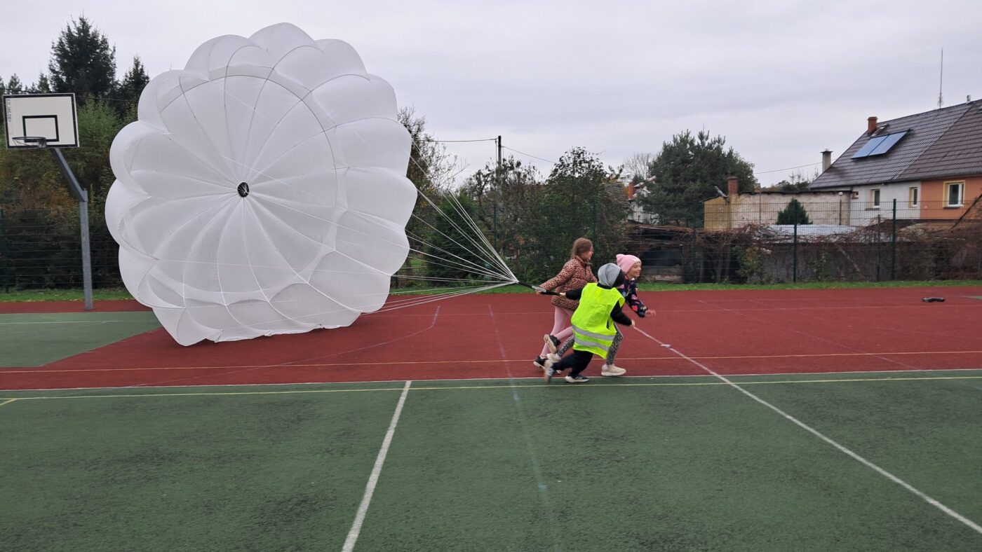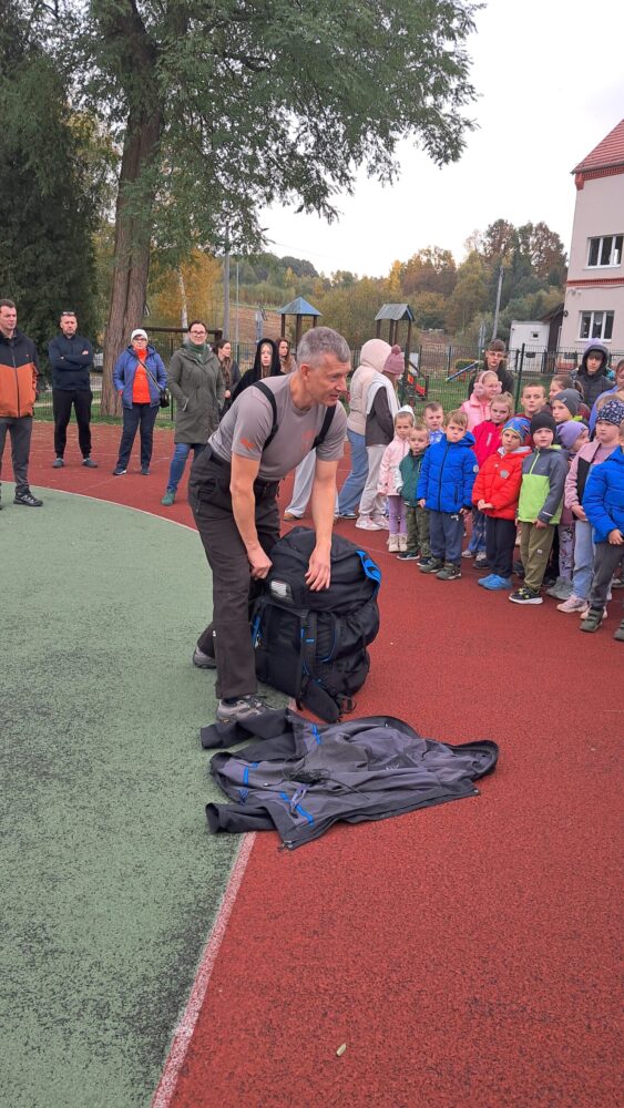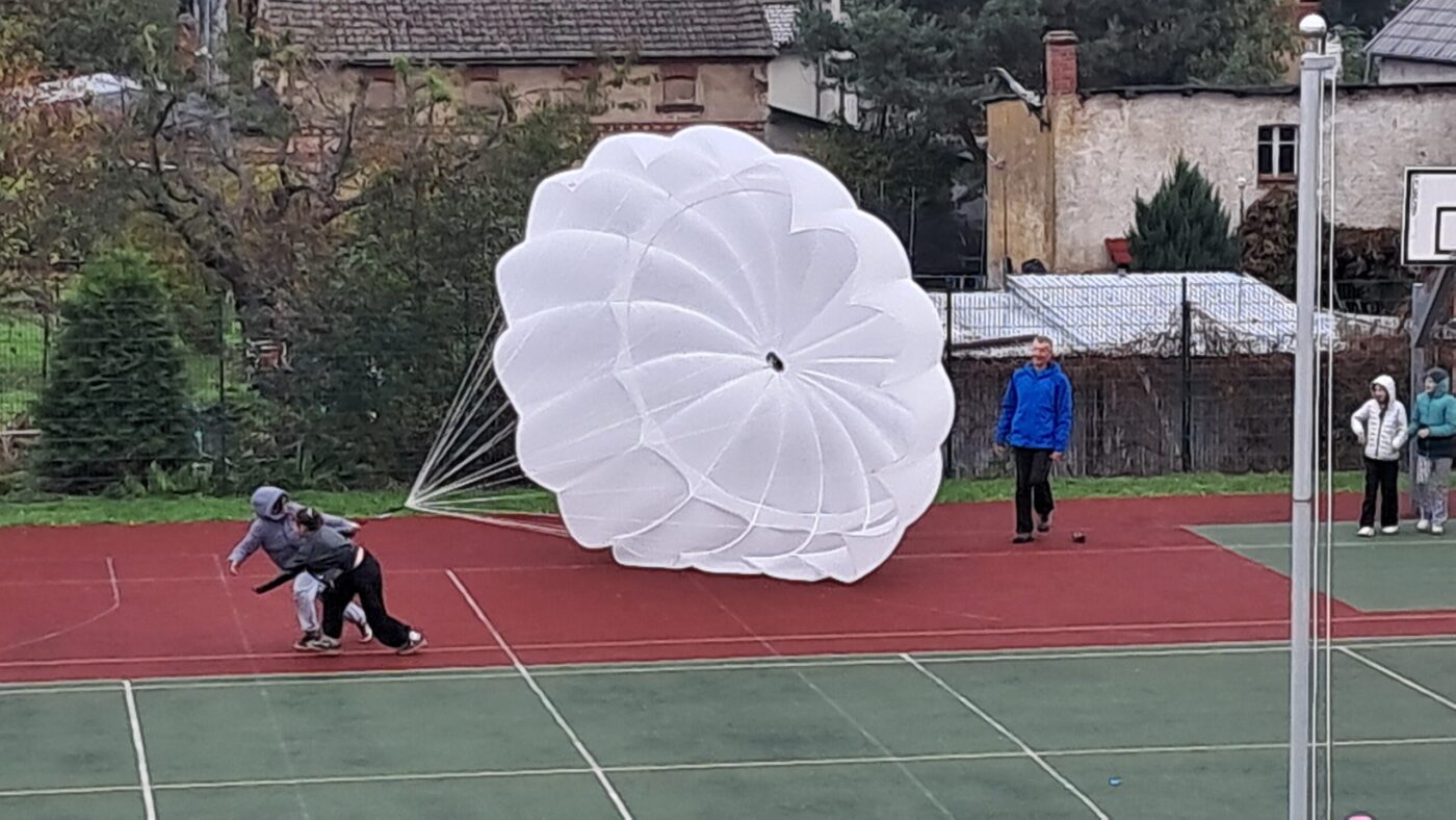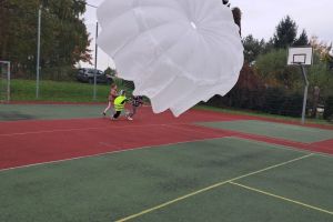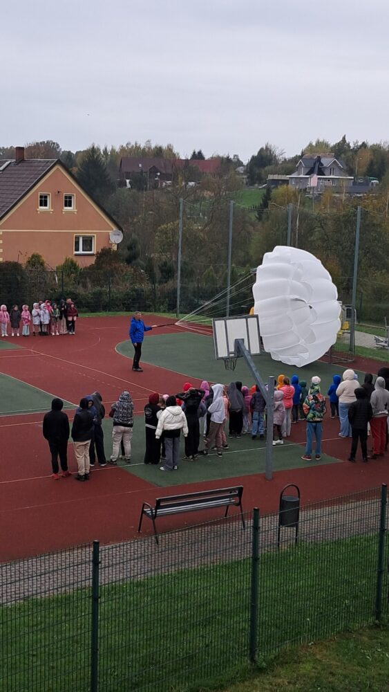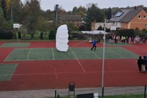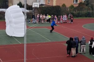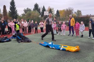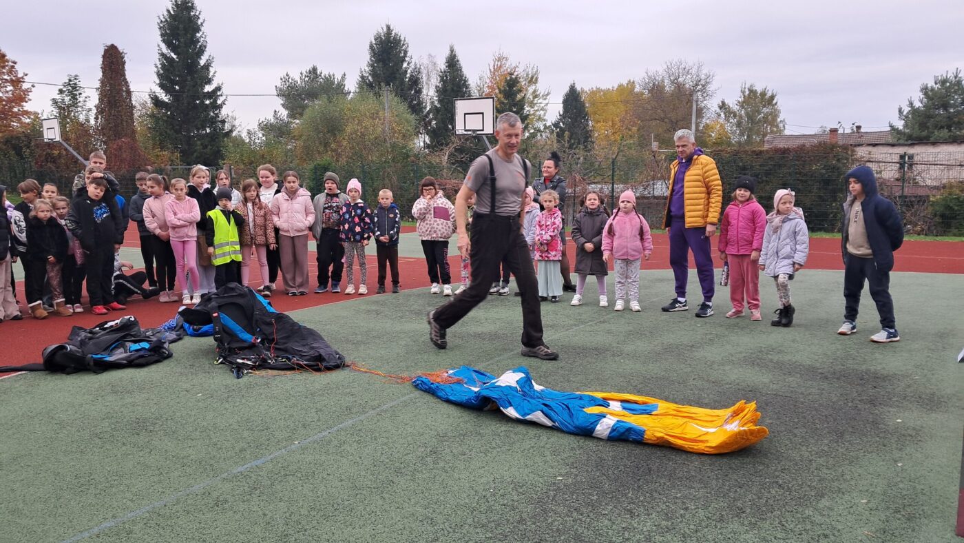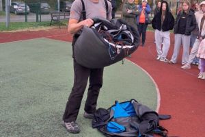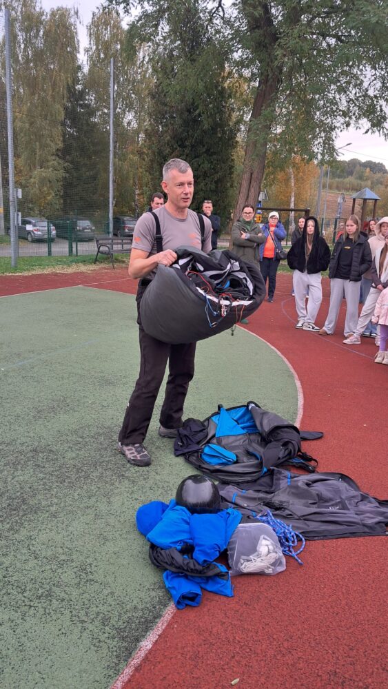 W OGÓLNOPOLSKIM TYGODNIU KARIERY zademonstrował uczniom budowę swojej paralotni i spadochronu oraz opowiadał o swoich podniebnych przeżyciach i spotkaniu z orłem bielikiem