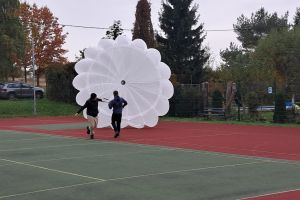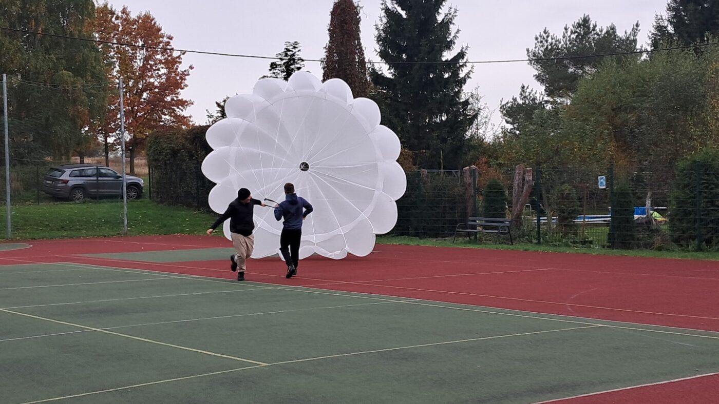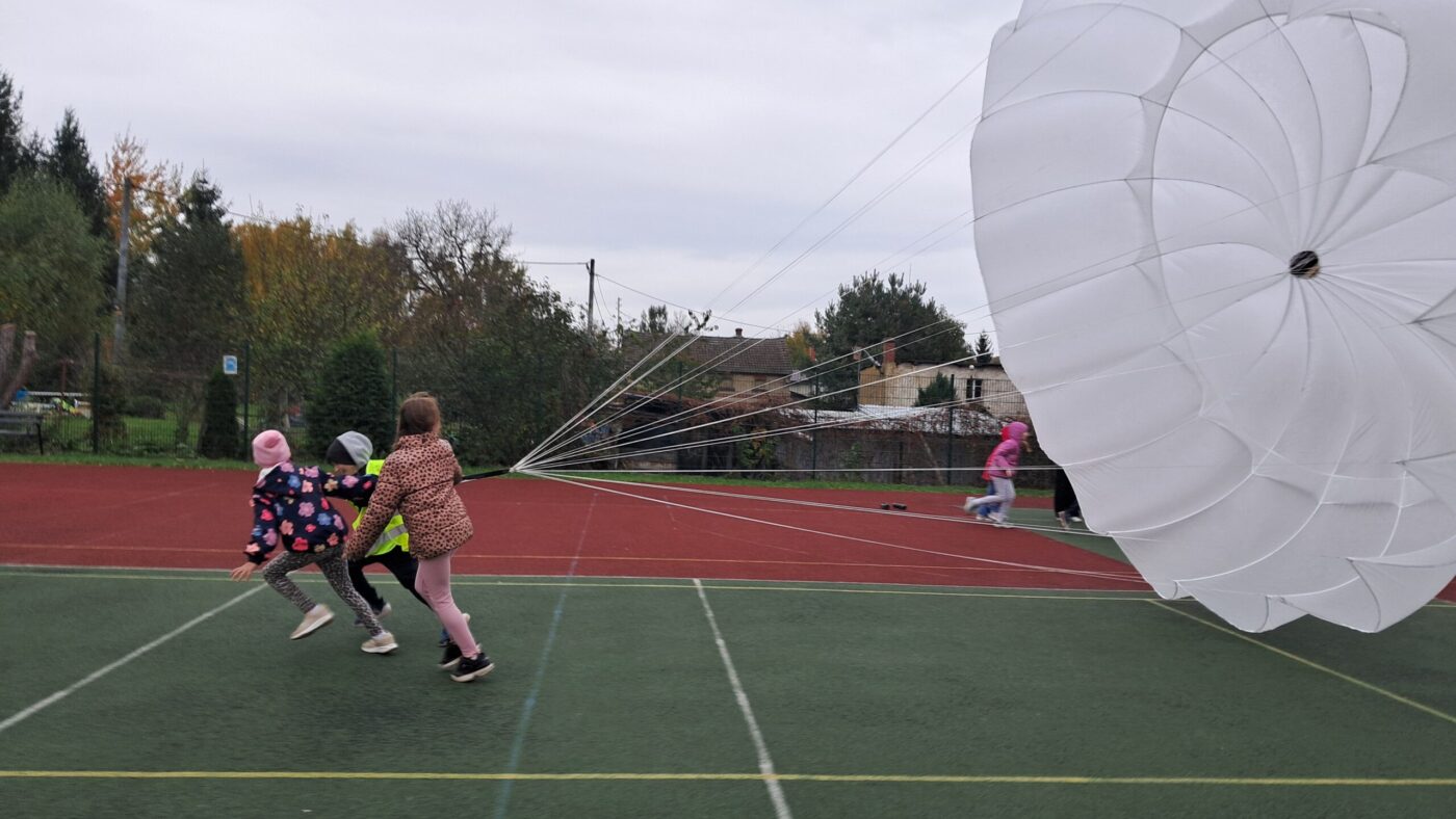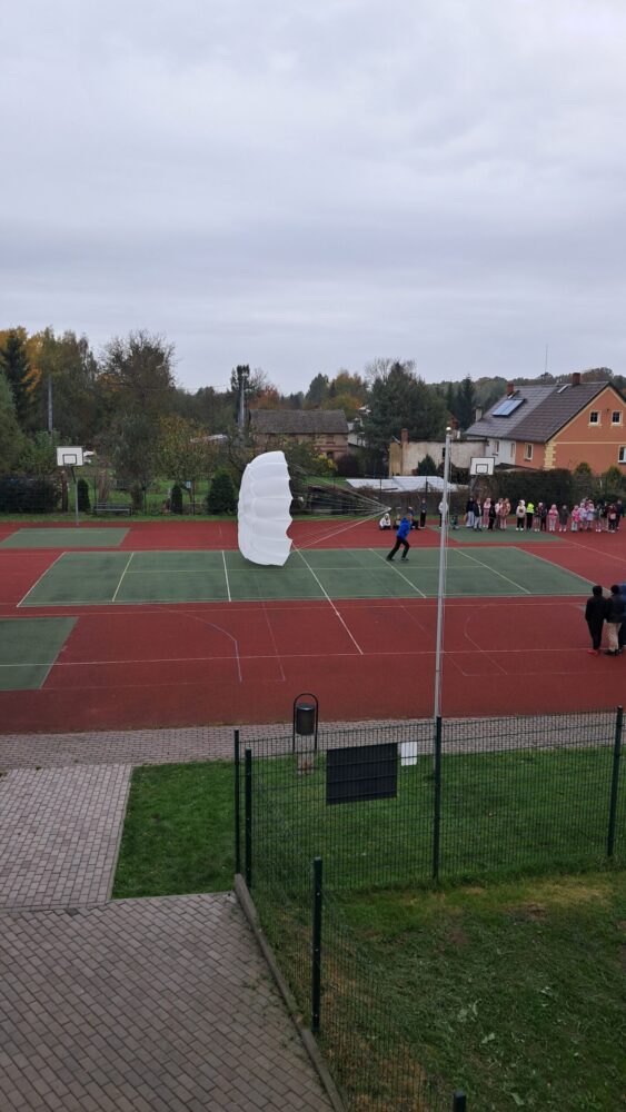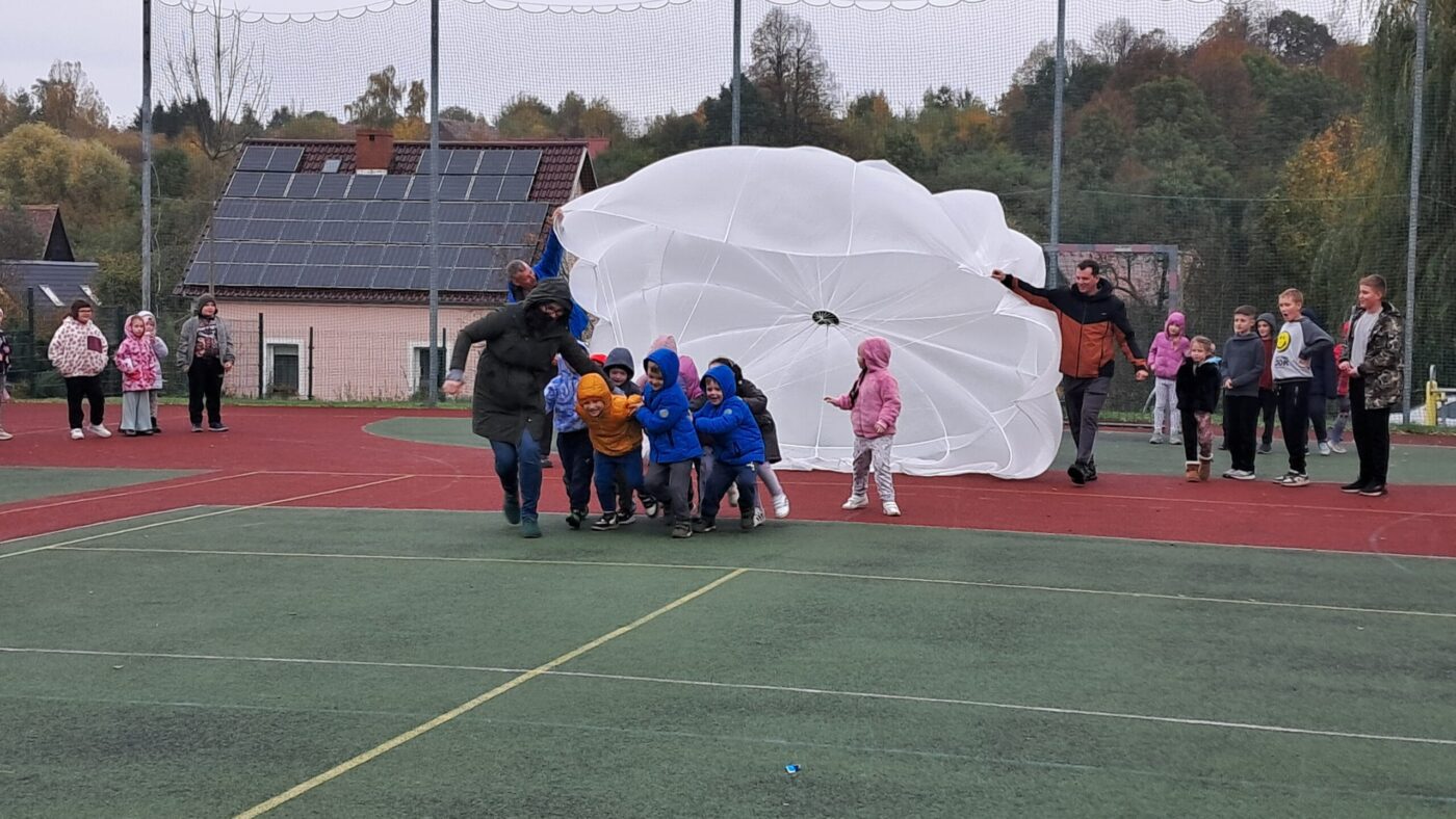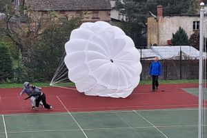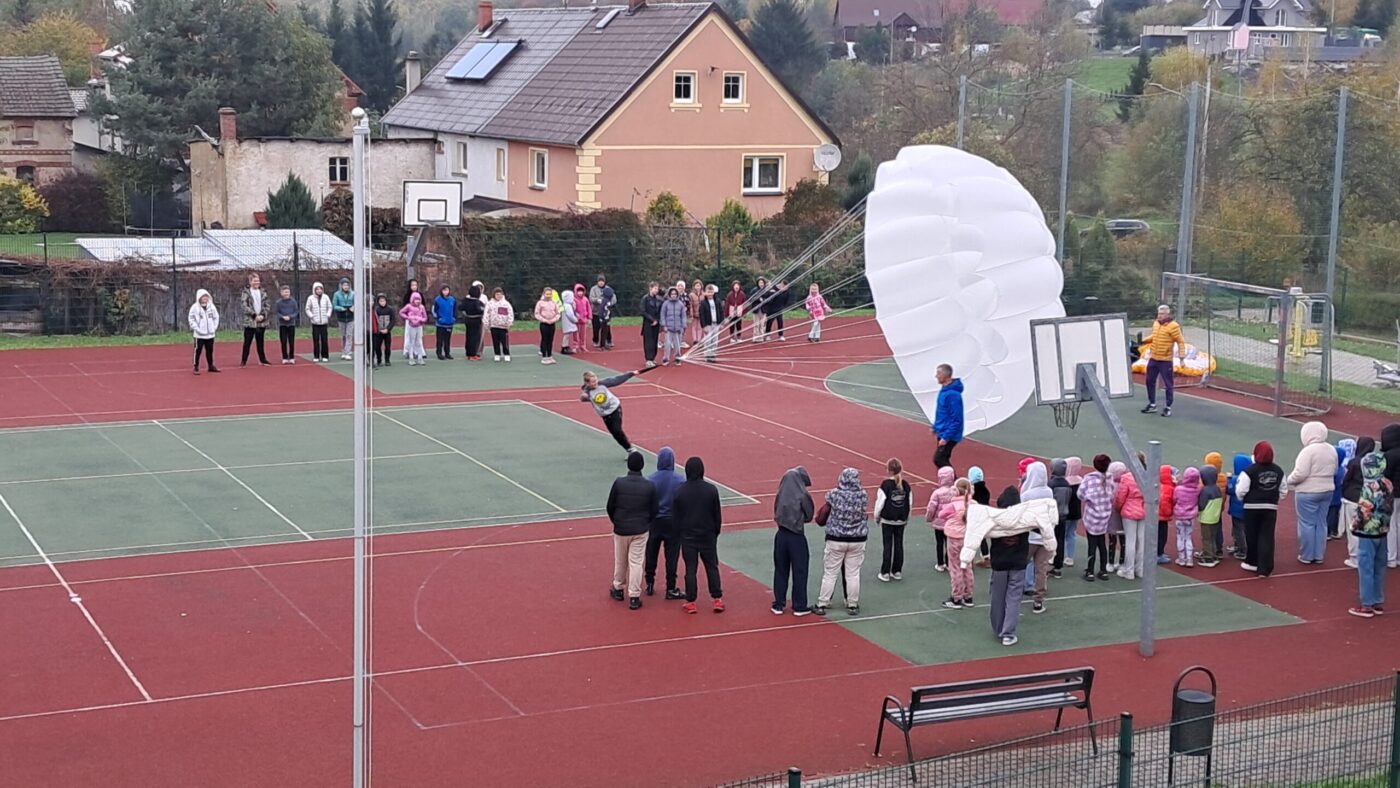 W OGÓLNOPOLSKIM TYGODNIU KARIERY zademonstrował uczniom budowę swojej paralotni i spadochronu oraz opowiadał o swoich podniebnych przeżyciach i spotkaniu z orłem bielikiem