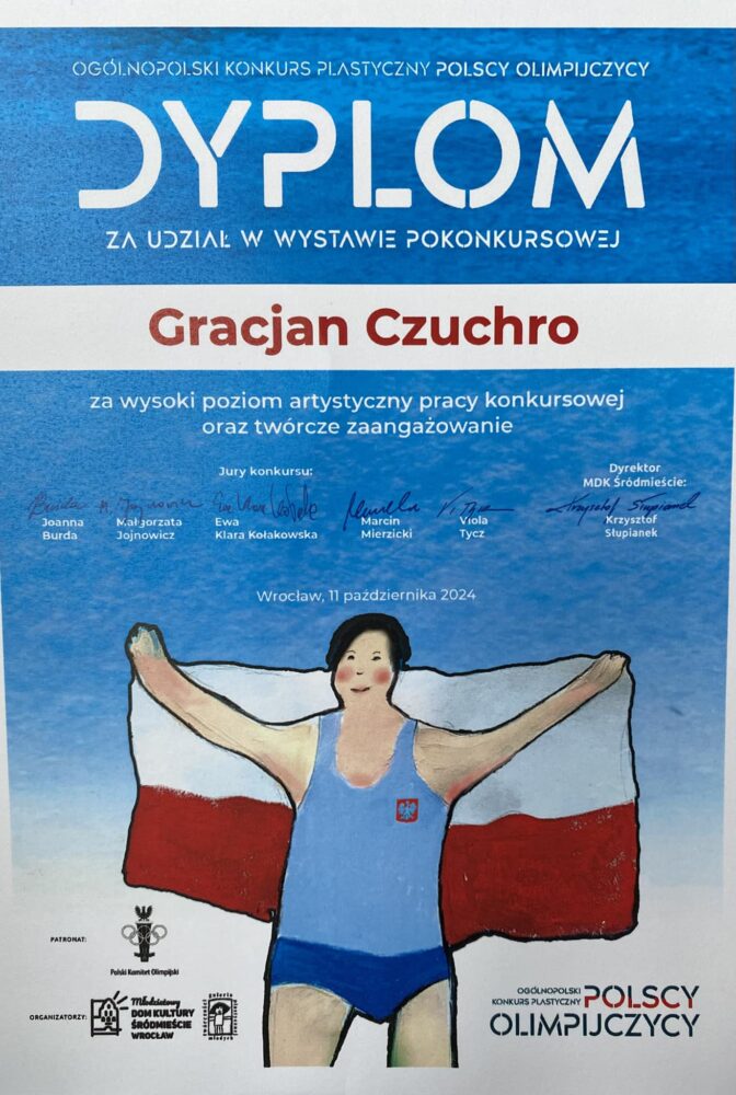 Miło nam poinformować o ogólnopolskim sukcesie Gracjana Czuchro ucznia klasy drugiej i jego mamy Doroty Czuchro w konkursie plastycznym „POLSCY OLIMPIJCZYCY”.