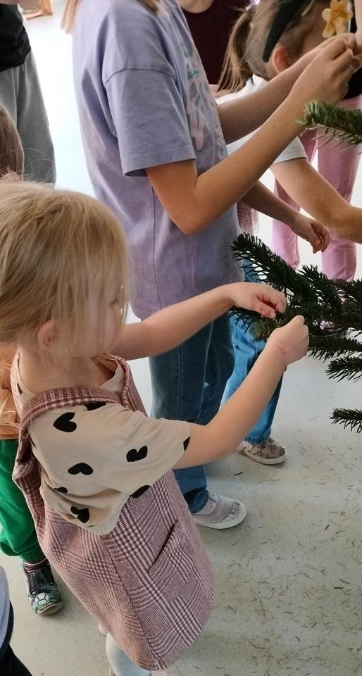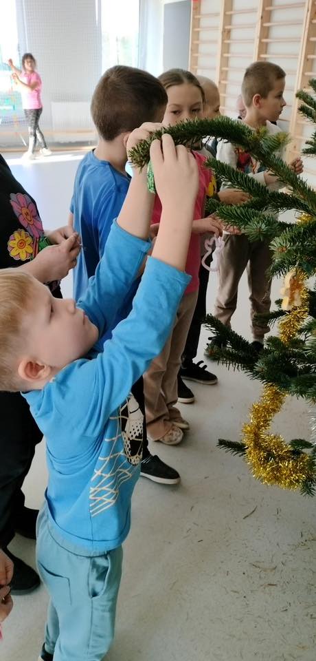 W naszych przedszkolnych salach zapanował wyjątkowy, bożonarodzeniowy nastrój. Dzieci z wielkim zaangażowaniem i radością wspólnie dekorowały salę, tworząc własnoręcznie ozdoby i strojąc choinkę w auli szkolnej. To świąteczne ustrajanie było nie tylko wspaniałą zabawą, ale także okazją do rozwijania kreatywności i współpracy. Dzięki najmłodszym sala wypełniła się ciepłem i symboliką Świąt Bożego Narodzenia, a na zajęciach religii ksiądz Łukasz przybliżył dzieciom historię Jezusa Chrystusa narodzonego w Betlejem ![]()
